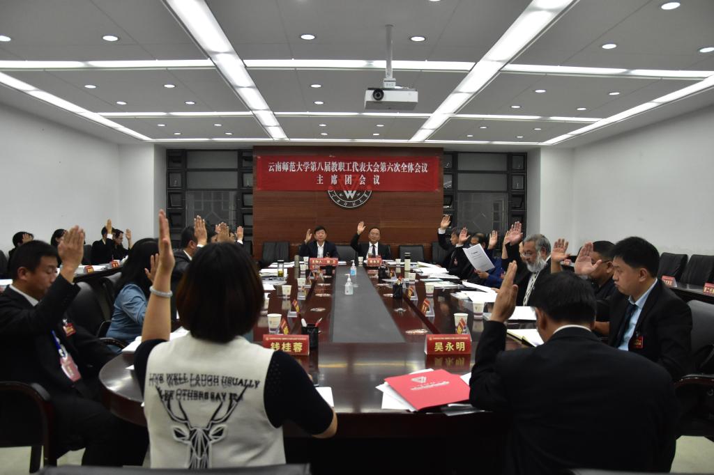 分代表团讨论结束后,大会主席团第二次会议在呈贡校区行政楼211会议室召开,会议由饶卫书记主持。会议听取了各代表团团长汇报代表团讨论审议情况,各代表团团长一致认为,规划纲要(草案)全面贯彻党的教育方针,客观总结了学校“十三五”以来的工作,实事求是分析了当前学校发展面临的形势,对学校当前和今后一个时期的发展提出了目标要求,思路清晰、任务明确,符合学校发展实际,具有很强的科学性、指导性。会议通过了总监票人、监票人建议名单(草案),审议通过了会议决议(草案)。