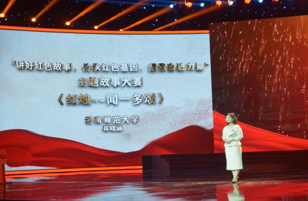 6月23日,云南省“讲好红色故事 传承红色基因 激发奋进力量”主题故事大赛决赛在云报传媒广场一楼报告厅举行。yL23411永利官网登录蒋晓涵老师的作品《红烛——闻一多颂》最终以9.952分夺得全场最高分。