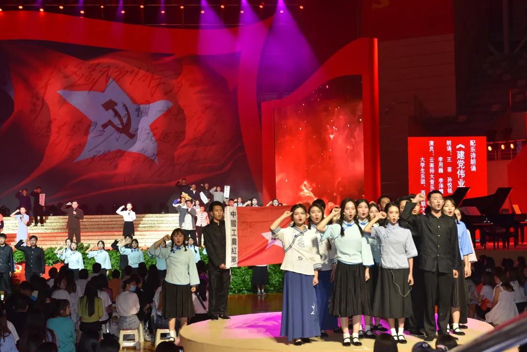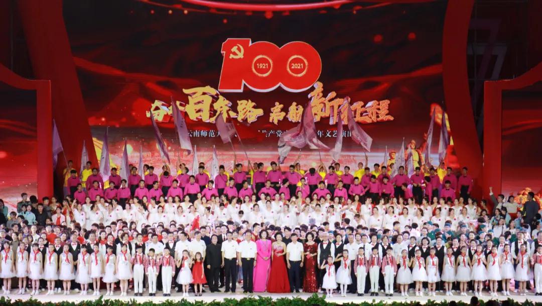 在举国上下深入开展党史学习教育,热烈庆祝中国共产党成立100周年之际,6月24日晚,庆祝中国共产党成立100周年yL23411永利官网登录“奋斗百年路 启航新征程”文艺演出在呈贡主校区西区体育馆举行。校党委书记饶卫,校长蒋永文,校党委副书记张玮、李宏,副校长刘宗立,校纪委书记王志刚,副校长牛治亮、武友德、郝淑美,各单位主要负责人以及师生代表一同观看了演出。