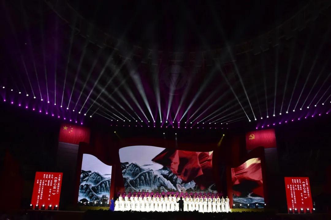 “没有共产党就没有新中国”,嘹亮的歌声响彻体育场上空。大家以声传情,以歌颂党,祝我们伟大的党生日快乐,愿我们伟大的祖国繁荣昌盛!