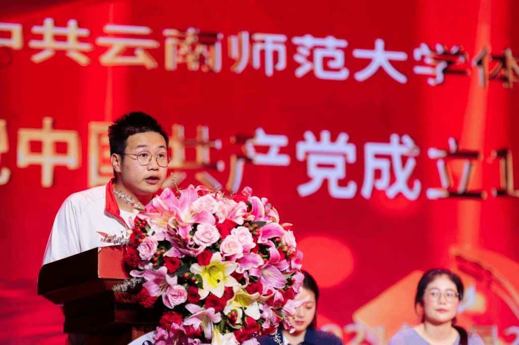 优秀党员代表张世超发言,表示今年是中国共产党建党100周年,能在这特殊的一年当选学生优秀共产党员是非常荣幸的。青年是伟大事业的未来,作为一名学生党员,会向着“更高、更快、更强”的目标前进,发扬体育精神,做到德才并重,勇于开拓,在努力实现中国梦的伟大实践中创造自己精彩的人生。