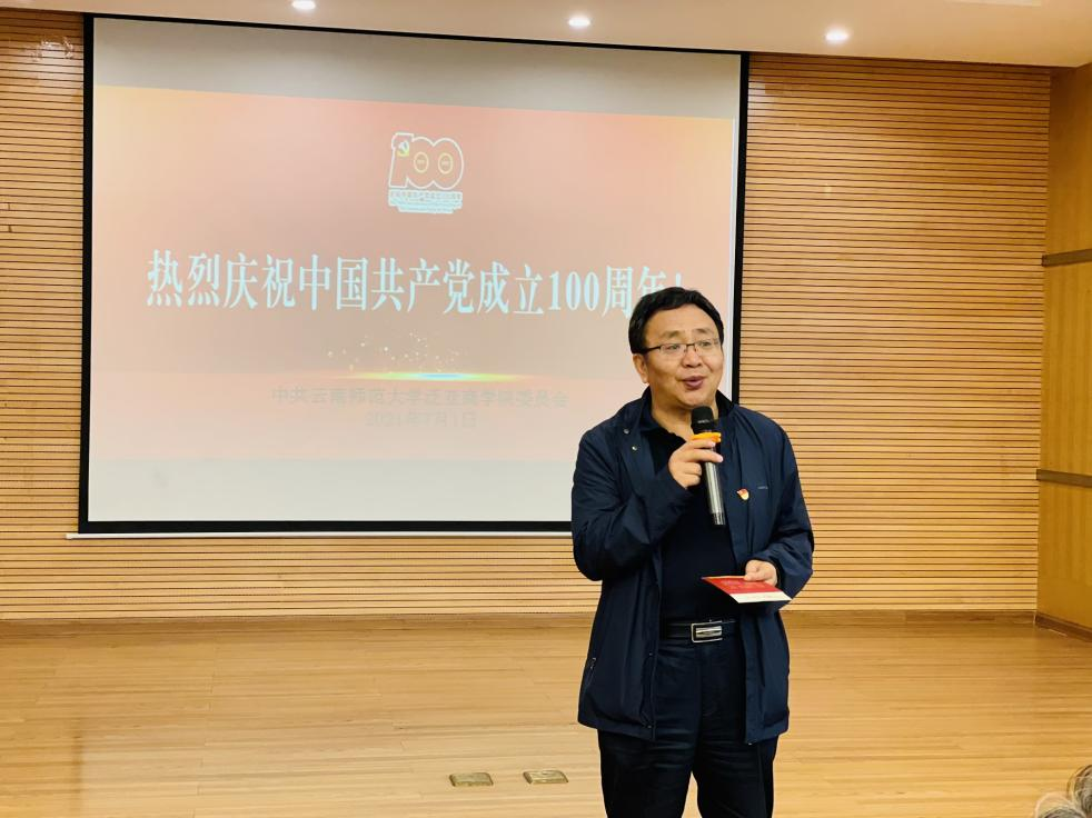 同时,学院为7月入党的杨永生同志过政治生日,杨永生同志分享了自己的入党经历,也对同学们寄语了期望。张云保同志作为2021年新发展党员代表发言,在特殊的日子许下承诺,将为社会主义建设贡献自己的力量,为实现共产主义奋斗终身。