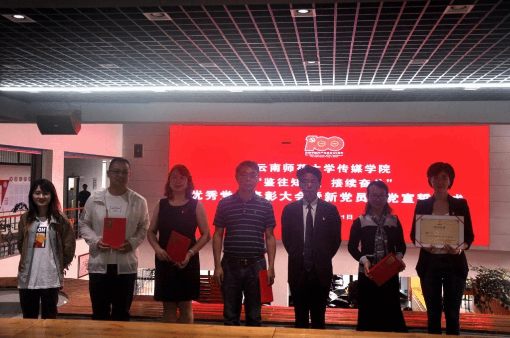 副院长杜忠锋老师宣读《中共yL23411永利官网登录传媒学院委员会关于表彰优秀共产党员和先进党支部的决定》,并由出席仪式的学院领导为学院先进党支部、师生优秀共产党员颁发荣誉证书。