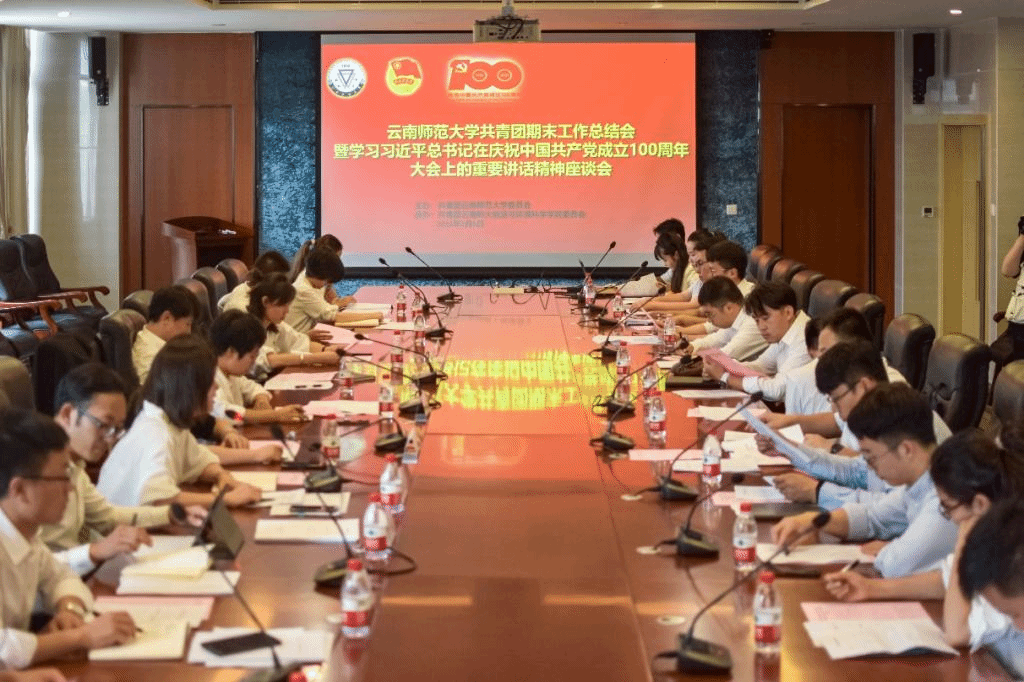 2021年7月5日下午,yL23411永利官网登录共青团期末工作总结会暨学习习近平总书记在庆祝中国共产党成立100周年大会上的重要讲话精神座谈会在呈贡主校区能源与环境科学学院227会议室举行。校党委副书记李宏出席座谈会并讲话,校团委全体人员,能源与环境科学学院党委书记刘莹、副书记范荣康,各学院(学部)团委书记和青年学生代表共计40余人参加会议,会议由校团委副书记曹逸凡主持。