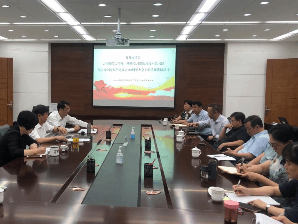 7月8日上午,永利官网召开统一战线2021年第三次“双月座谈会”,学习贯彻习近平总书记在庆祝中国共产党成立100周年大会上的重要讲话精神。校党委书记饶卫、副书记张玮及各民主党派、统战团体代表人士参加会议。会议由统战部部长龙梅主持。