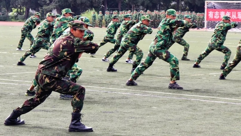带训教官们以身作则,以国防教育教会学生如何磨练坚韧意志,通过每日披星戴月的军事技能演练,带来了现场震撼人心的军事技能展示,充分展现了中国军人坚韧刚强的意志,赢得了全场热烈的掌声。