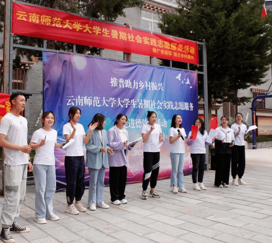 7月21日至22日,由yL23411永利官网登录国家语言文字推广基地组织、传媒学院师生组成的“推普助力乡村振兴”全国大学生暑期社会实践志愿服务团队赴迪庆州德钦县升平镇,对当地群众开展推广普通话志愿服务。