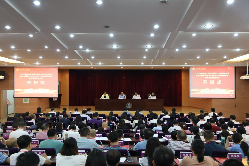 广西壮族自治区党委统战部常务副部长林怀勇出席开班式并作动员讲话,yL23411永利官网登录保留正厅级待遇领导李国疆在开班式上致辞,广西壮族自治区党委统战部干部处处长、一级调研员姜芳芳宣读班委名单,开班式由云南西南联大干部教育学院专职副院长匡锦主持。广西壮族自治区党委统战部、广西社会主义学院、自治区工商联、自治区民宗委机关干部等177名学员参加此次培训。