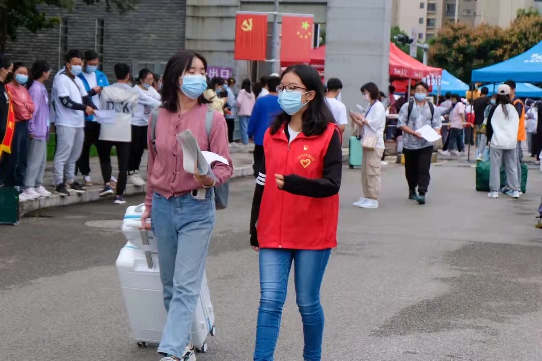 在这次迎新工作中,我主要负责新生办完手续后帮他们搬行李,带领他们去宿舍,并向他们介绍学校的一些基本情况。还记得去年因疫情影响,我报到的时候校门外面有很多家长。家人不能送我进校园,我自己也有些难过,但还好遇到了热情的学姐,她帮我把行李搬到了宿舍,我至今还特别感动,就希望自己在未来的生活中也可以尽自己一份力去帮助有需要的同学朋友。