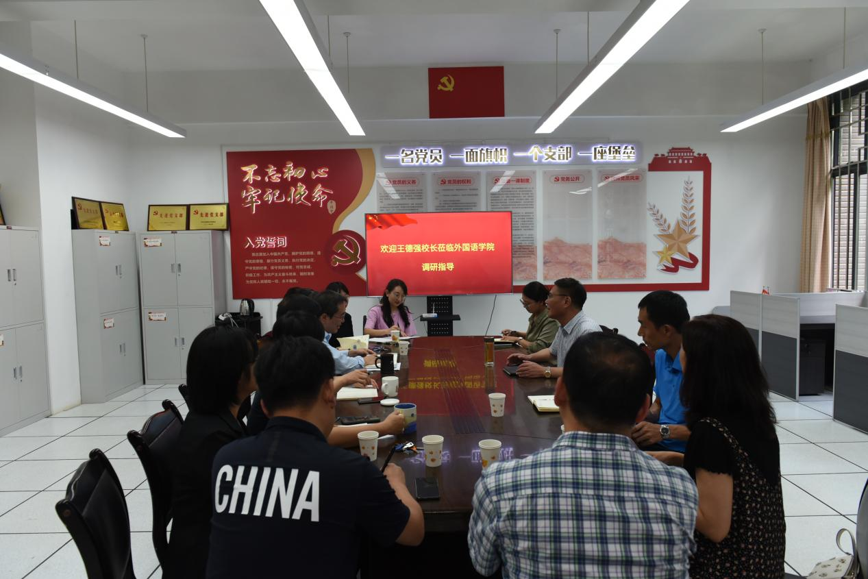 王德强校长充分肯定外国语学院近年来取得的成绩,并对学院下一步工作提出要求:一是要统筹好学科建设和专业建设,抢抓发展机遇,做好顶层设计,全力推进国家级一流专业建设和师范专业三级认证工作;二是要做好外国语言文学博士点申报工作,补齐短板,加强学科队伍和平台建设,加大力度引育学科带头人,产出高水平科研成果。整合资源,加强内涵建设,不断提升学科整体实力和竞争力;三是要进一步加强大学英语教学改革,提升英语四级、六级等通过率;四是要发挥好党委的政治核心作用,进一步推进党建工作与学科专业的深度融合,全力提升人才培养质量,推动学院高质量发展。