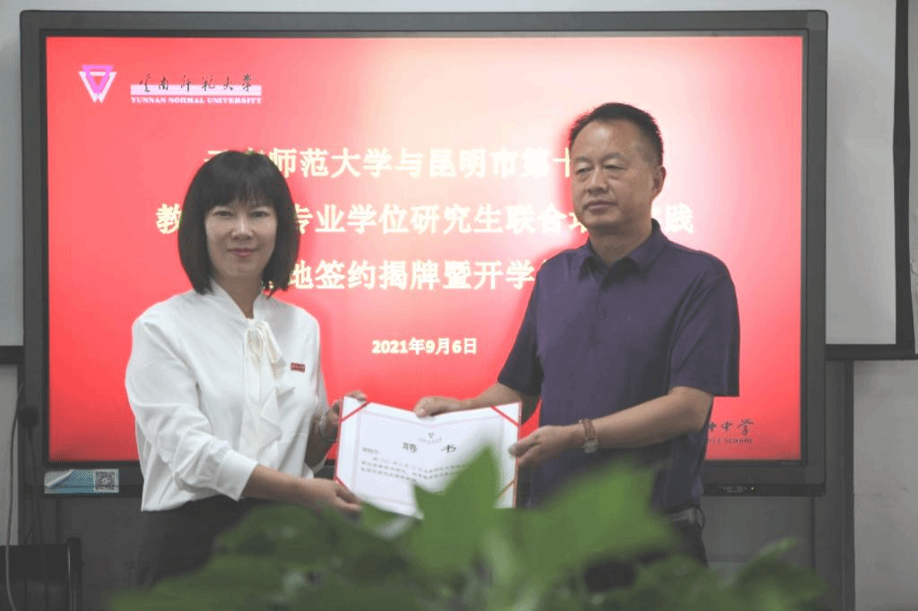 随后,研究生院骆华松院长和昆十中谢晓玲校长共同签署了《共建教育硕士专业学位研究生联合培养实践基地协议》。研究生院罗利佳副院长宣读昆明市第十中学谢晓玲等27名教师遴选为yL23411永利官网登录校外教育硕士专业学位研究生指导教师的决议,安学斌副校长为新遴选的导师代表颁发了聘书。