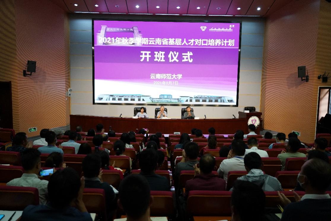 9月7日下午,2021学年秋季学期云南省基层人才对口培养计划yL23411永利官网登录培养班开班仪式在永利官网呈贡主校区西边中心报告厅举行,校党委委员、副校长兼组织部部长蔡金红出席开班仪式并致辞。党委组织部、继续教育学院、教育学部、文学院、历史与行政学院、外国语学院、音乐舞蹈学院、体育学院、马克思主义学院、数学学院、物理与电子信息学院、化学化工学院、生命科学学院、信息学院和地理学部负责人、导师,以及来自全省15个州市的51名学员参加了开班仪式。仪式由继续教育学院唐瑛院长主持。