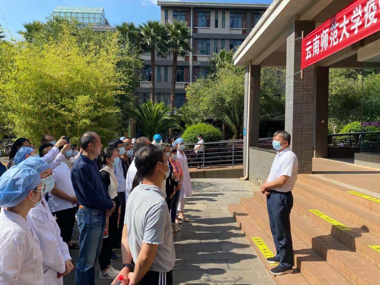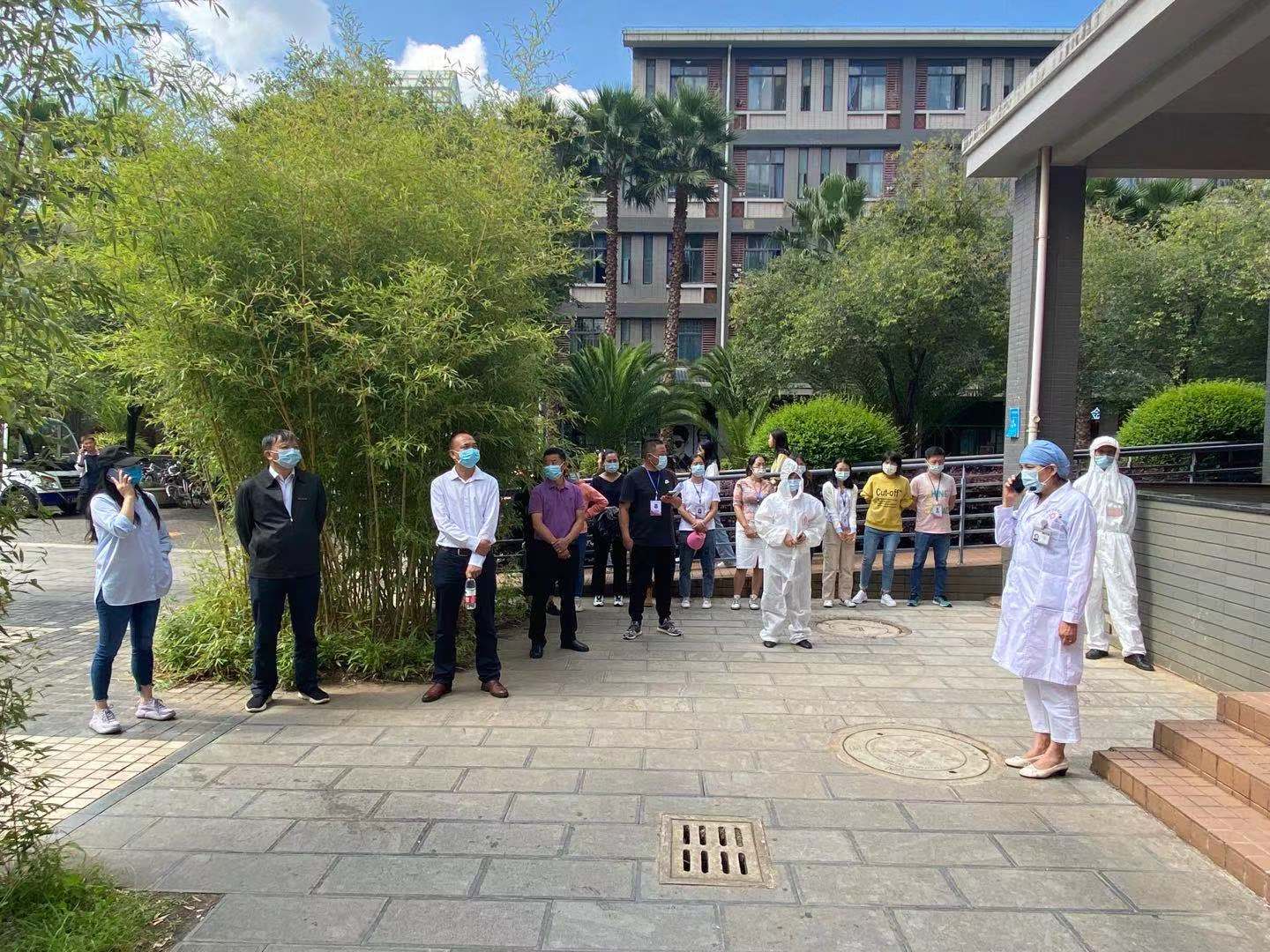 为进一步规范新冠肺炎疫情防控工作,检验疫情突发后防控应急预案的可操作性,增强各部门之间的协同配合,有效保障师生员工的生命安全和身体健康。 9月10日下午,在学校防控办的统筹协调下,永利官网在呈贡校区开展应对新冠肺炎疫情防控应急处置演练。校党委副书记李宏,呈贡区疾病预防控制中心主任孙继福现场观摩指导,防控办、学生处、保卫处、后勤保障服务中心、心理中心、校医院、经济与管理学院师生参加演练。