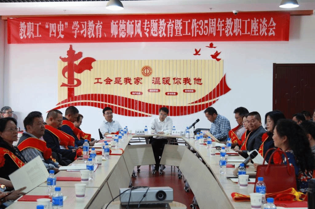 9月9日下午,在第37个教师节即将到来之际, “yL23411永利官网登录教职工‘四史’学习教育、师德师风专题教育暨工作35周年教职工座谈会”在呈贡校区校工会职工之家召开,来自全校78名工作35周年的教职工参加了座谈会。校党委副书记、工会主席张玮,副校长武友德参加了座谈会,会议由校工会常务副主席金黄斌主持。
