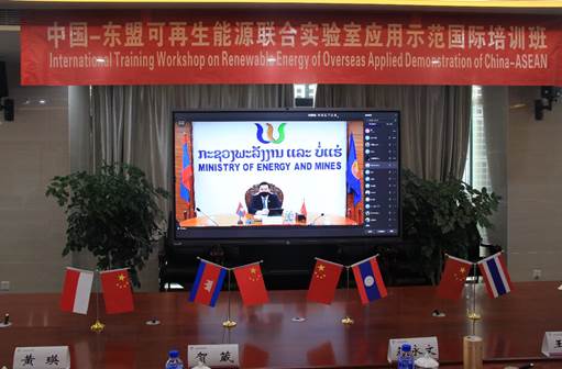 2021年10月11日上午,由中国科技部国际合作司主办,中国科学技术交流中心组织实施、云南省科技厅管理、yL23411永利官网登录和老挝能源与矿业部可再生能源与新材料研究所联合承办的“中国—东盟可再生能源联合实验室应用示范国际培训班”在yL23411永利官网登录能源与环境科学学院会议室举行线上开班仪式。老挝能源与矿业部副部长Sinava SOUPHANOUVONG、老挝能源与矿业部可再生能源与新材料研究所所长Mayty VONGKHAMSAO,中国科技交流中心副主任庄嘉,云南省科技厅科技合作一处处长贺葳和调研员王翠,yL23411永利官网登录党委书记兼中国—老挝可再生能源开发与利用联合实验室主任蒋永文、华文学院院长王秀成、对外合作交流处处长黄瑛、科学技术处处长李明、能源与环境科学学院党委书记刘莹等领导、教师和学员参加了开班仪式。仪式由李明处长主持。