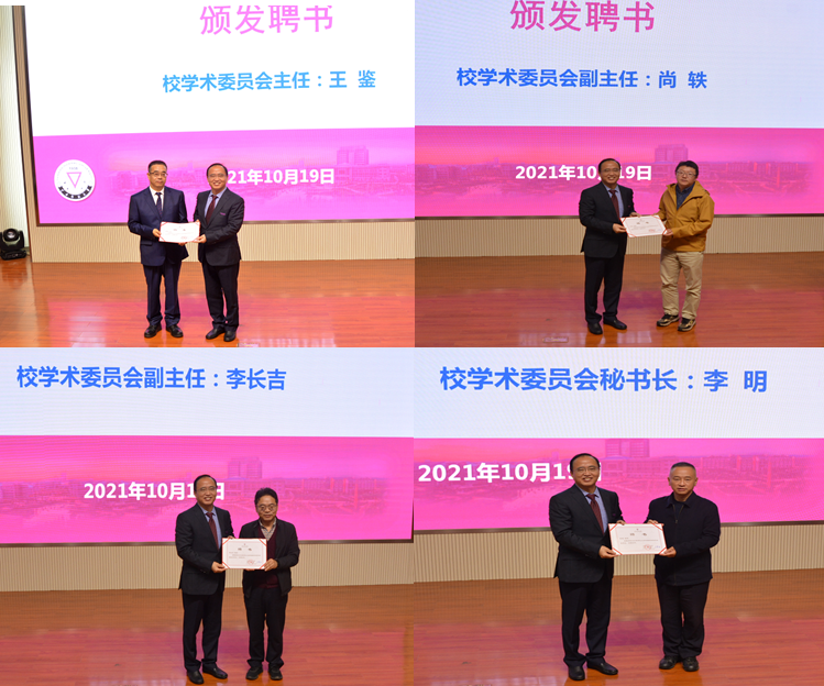 校党委书记蒋永文为本届委员颁发聘书并讲话,他指出,本届校学术委员会还分设了社会科学委员会、科学技术委员会、科研诚信委员会,是践行崇尚学术、尊重规则价值导向的具体体现,也是我们落实依法治校,推进改革创新的现实表现,具有重要的改革意义;学术委员会的成功换届,对加快推进实施一流学科建设战略、科研创新能力提升行动计划、促进学校“十四五”时期事业又好又快发展,必将产生积极而深远的影响;校党委将充分尊重学术委员会在学术事务方面的地位,进一步健全以学术委员会为核心的学术管理体系,为完善学校治理结构,推进高水平大学建设提供更强大的动力。