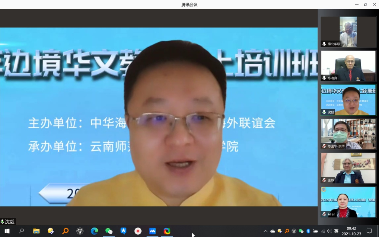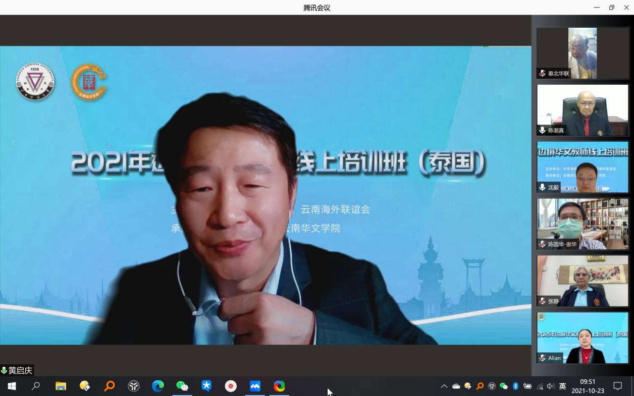 10月23日上午,由中华海外联谊会、云南海外联谊会主办,yL23411永利官网登录云南华文学院承办的2021年边境华文教师线上培训班(泰国)开班仪式顺利举行,来自泰国清迈崇华新生华立学校、南邦美速智民学校、北揽坡同德学校的领导和87名本土华文教师参加开班仪式。