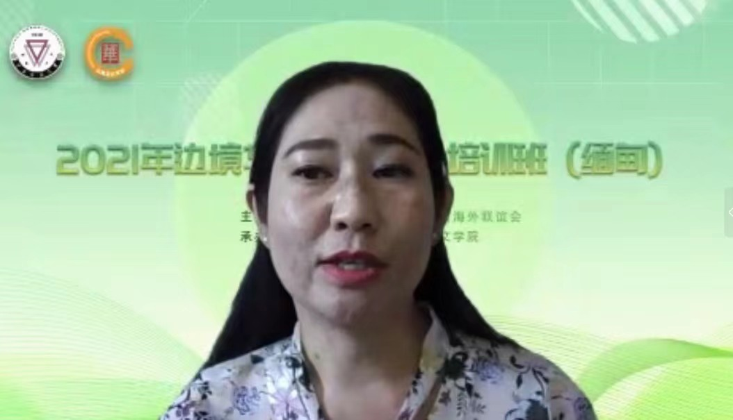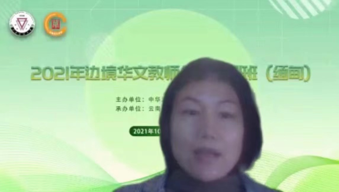 缅甸东枝果文学校赵恬娟老师作为参训学员代表发言,表示要珍惜这次学习培训的机会,认真参加培训,加强与授课专家和学员之间的沟通交流,非常期待各位专家的讲座和授课,相信本次培训将有力帮助缅甸华文教师改进教学教法、提高教学技能、提升教育教学水平。