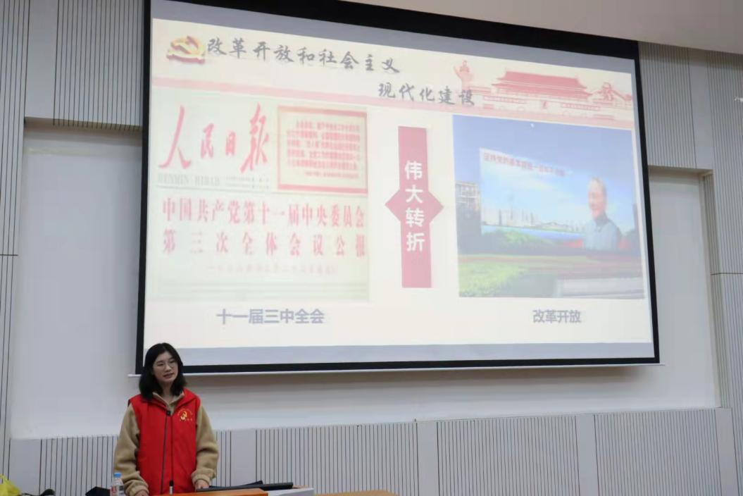 此次活动邀请到yL23411永利官网登录党史学习教育学生宣讲团作宣讲。宣讲团成员围绕党的百年奋斗征程,结合先进人物事迹,带领同学们回顾了新民主主义革命的胜利,社会主义建设的伟大成就以及五年来我国发生的历史性变革和历史性成就等内容,一同展望了开启全面建设社会主义现代化国家新征程的宏伟蓝图。