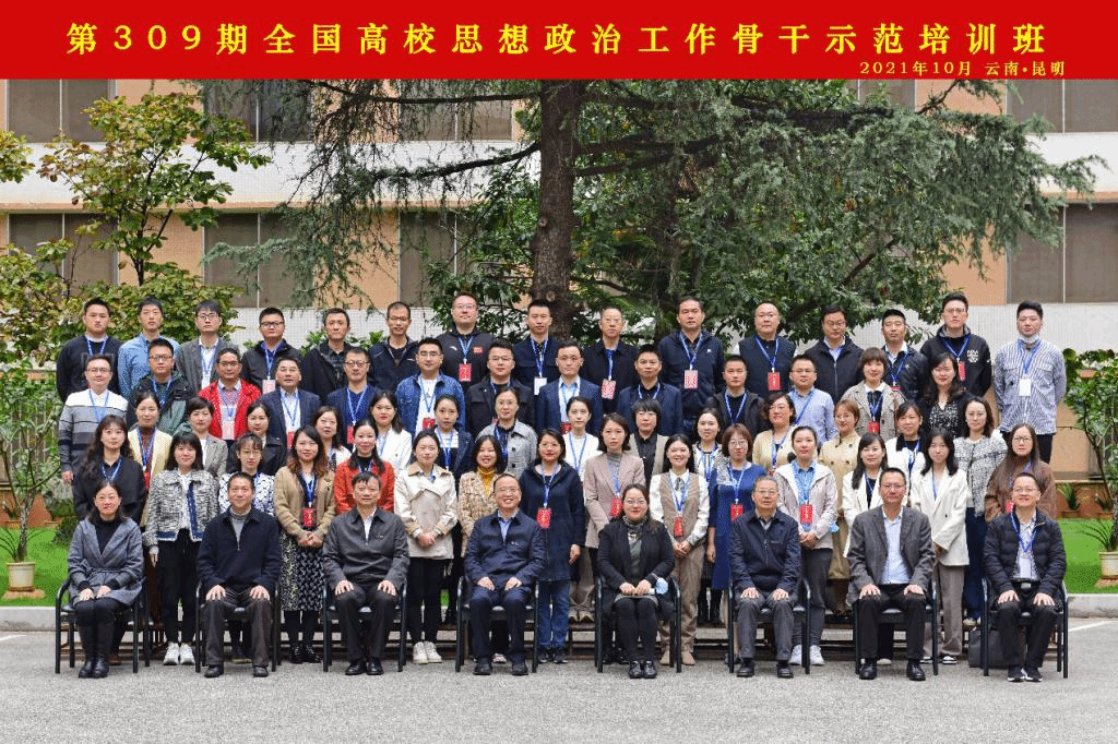 2021年10月27日上午,由教育部思想政治工作司主办、教育部高校思想政治工作队伍培训研修中心(yL23411永利官网登录)承办的第309期全国高校思想政治工作骨干示范培训班在昆明莲花宾馆举行开班仪式,来自全国21个省、市、自治区的58名高校思想政治工作骨干参加此次培训。校党委书记、教育部高校思想政治工作队伍培训研修中心(yL23411永利官网登录)主任蒋永文,云南省委教育工委学生工作部部长侯炳霞,校党委委员、副校长蔡金红,以及校学生工作领导小组部分成员单位主要负责人出席开班仪式。开班仪式由校党委副书记、教育部高校思想政治工作队伍培训研修中心(yL23411永利官网登录)副主任李宏主持。
