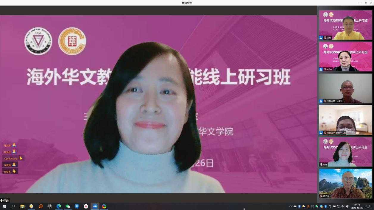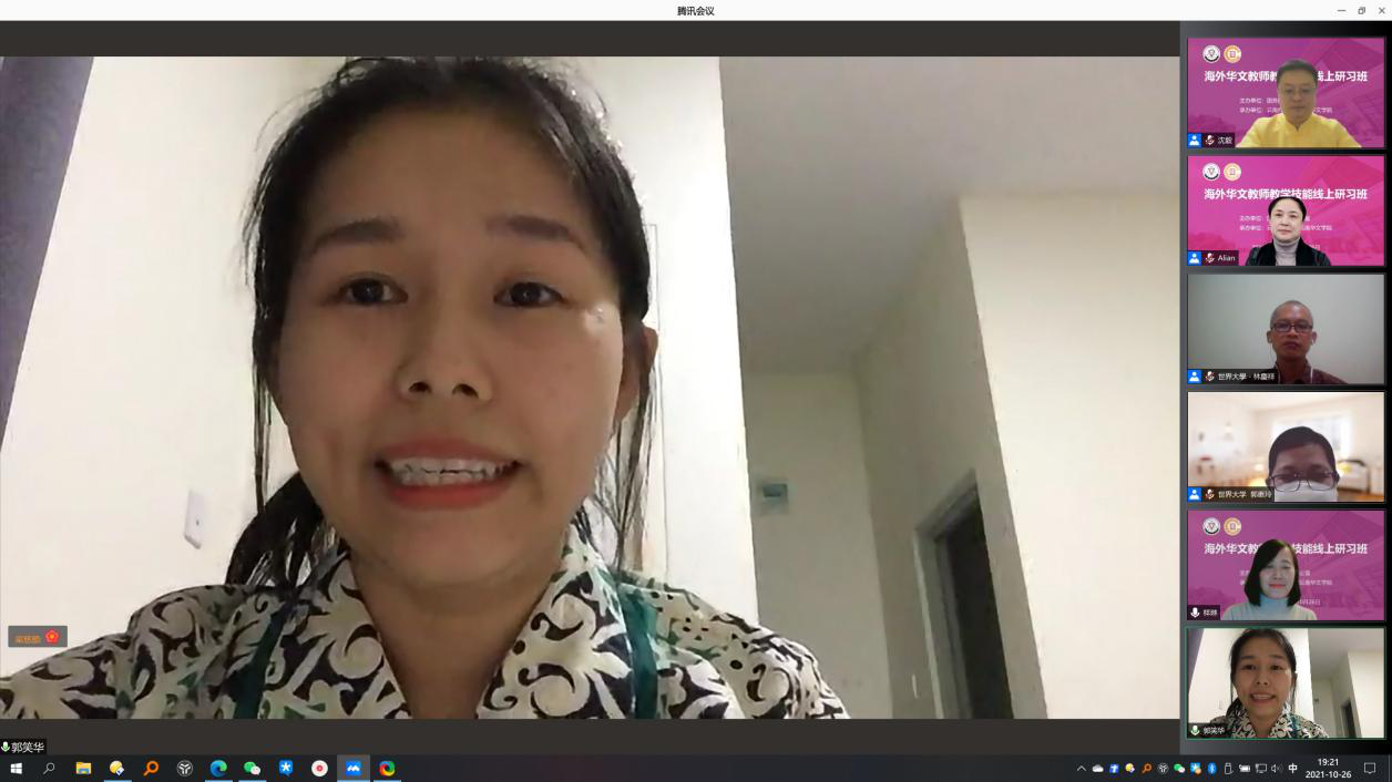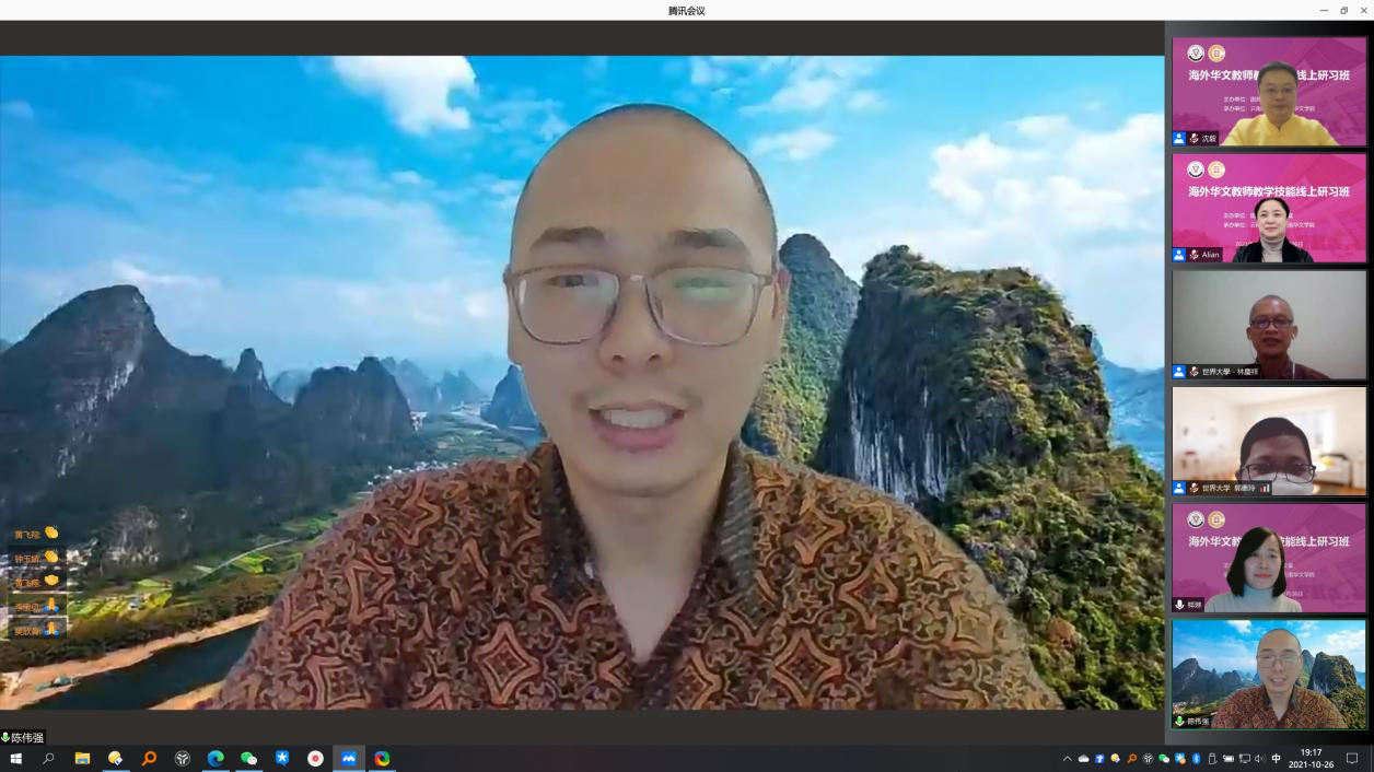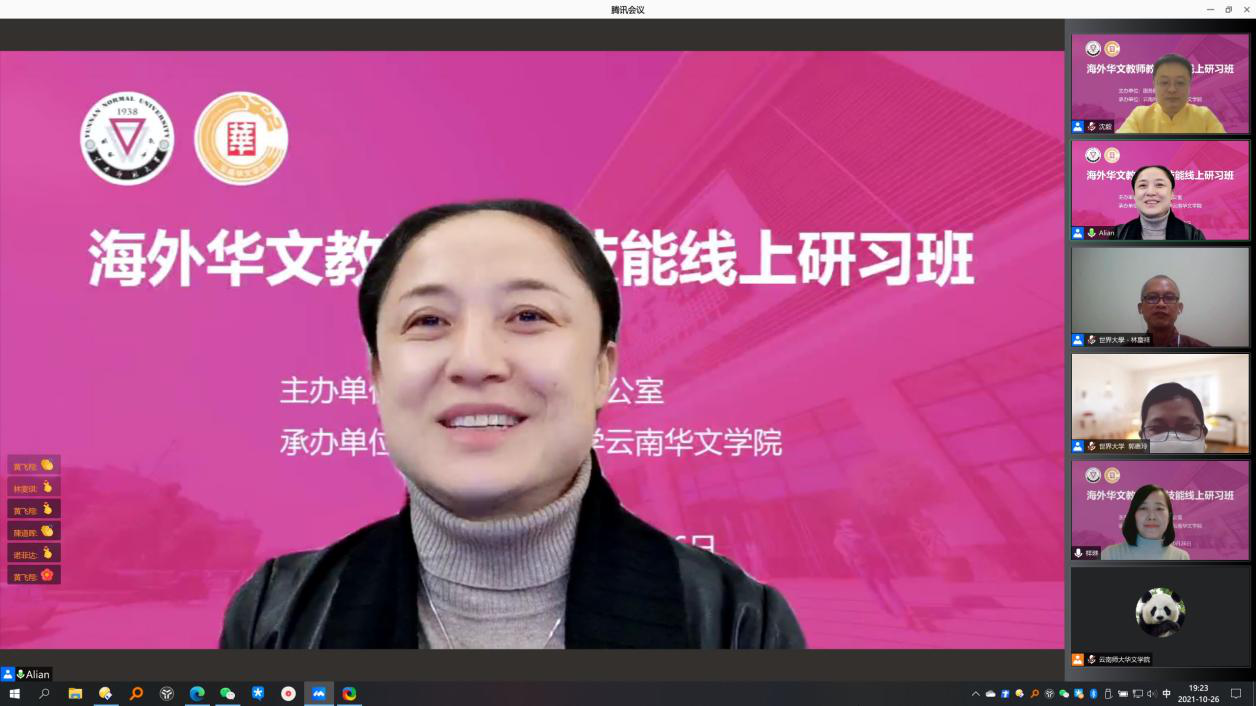 10月26日,由国务院侨务办公室主办、yL23411永利官网登录云南华文学院承办的2021年海外华文教师教学技能线上研习班结业仪式在线上顺利举行。印度尼西亚世界大学林庆祥副校长,云南华文学院和雪莲书记、王秀成院长以及学院相关领导出席,来自印度尼西亚16个省、68所学校的参训华文教师参加了结业仪式,仪式由yL23411永利官网登录汉推基地常务副主任沈毅教授主持。