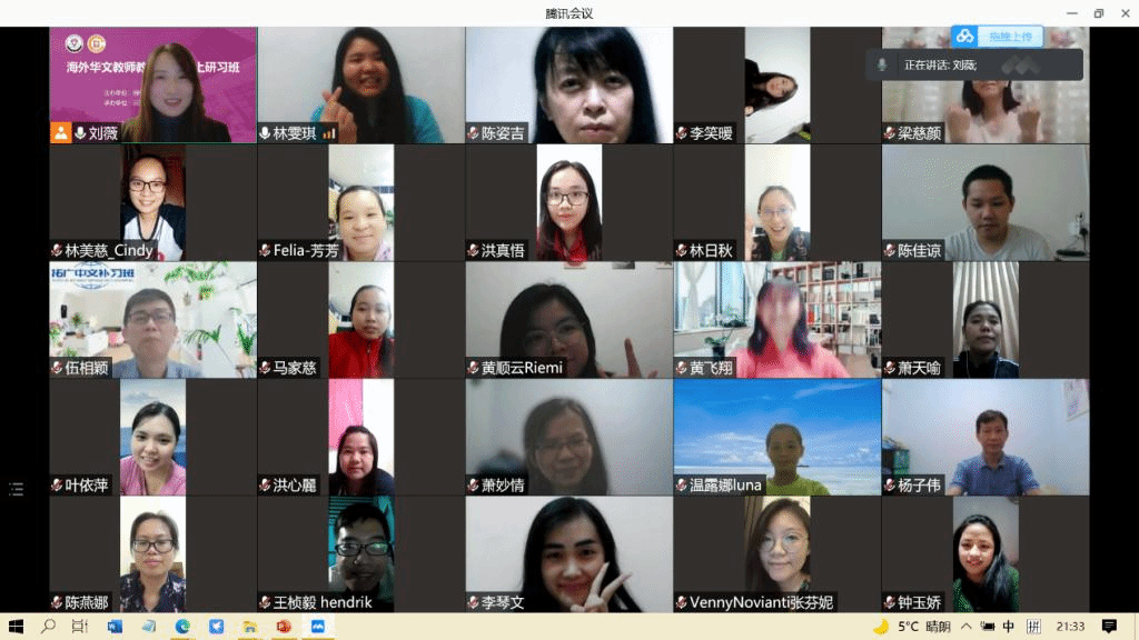 学员代表郭笑华老师在发言中提到,全球疫情并未影响印尼华文教师们的学习心态,相比老一辈印尼华裔,他们现在有了更多的学习机会,同时还可以借助科技的力量,通过网络在线上学习,她感到非常幸运,她将以此次线上研习班为契机,做好一名华文教师,为发扬华文教育、传递中华文化而继续努力。