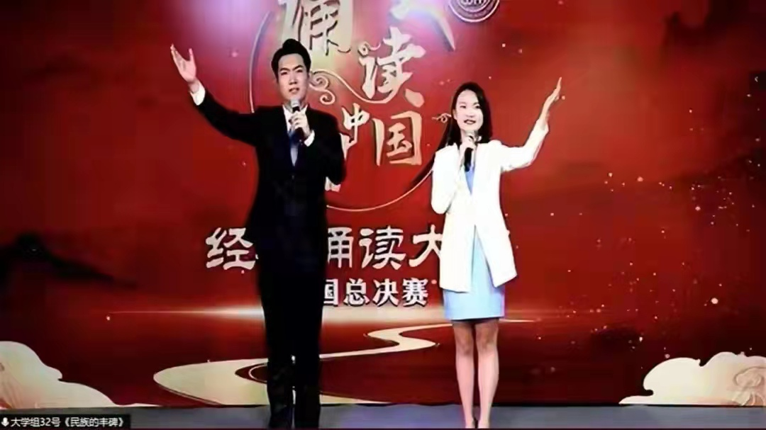 比赛中,传媒学院杨颖老师将文字转为声音,将情感注入内心,慷慨激昂,深情朗诵,深深感动了评委和观众,荣获教师组一等奖。