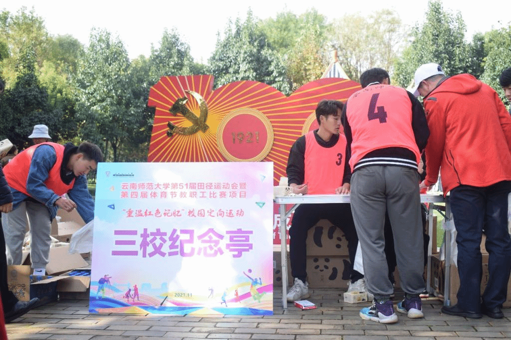 运动会开幕式后,以深化党史学习,传承红色血脉为主题的“重温红色记忆”定向运动在红烛广场举行,比赛共设有三校纪念亭、和志虹雕像、南湖、北潭、人杰园和校歌园6个打卡点,比赛共有30支队伍1500余人参加。