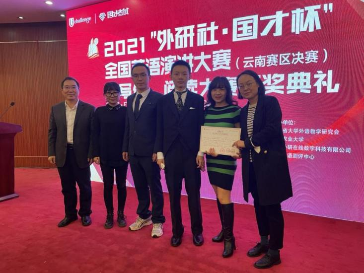 “外研社杯”全国英语阅读、演讲、写作大赛由外语教学与研究出版社主办,是全国高校级别最高的外语赛事。大赛在云南省赛区由云南省外国语言文学类专业教学指导委员会、云南省英语专业教学指导分委员会、云南省大学外语教学与考试指导委员会、中国外语与教育研究中心合办,云南省大学外语教学研究会、云南农业大学、北京外研在线数字科技有限公司、中国外语测评中心承办,为大学生们提供了一个展示个人英语能力与风采的舞台,促进了相互间的交流与进步,也是展示各高校创新教学理念与模式以及所取得教学效果的重要平台。