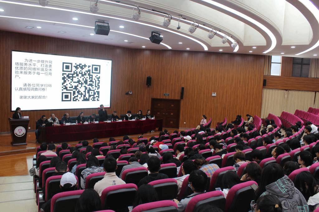 为提高校园网服务质量,深入了解学生在校园网使用中遇到的困难和需求,开展“我为群众办实事”实践活动,2021年11月19日,网络与信息中心联合校团委、教务处、学生处、研究生处、后勤保障服务中心,邀请了260余名呈贡校区各学院的本科生、研究生和博士生代表,在汇学楼2栋101报告厅召开学生校园网体验与建设交流座谈会,会议由校学生会刘兴田同学主持。