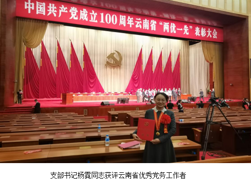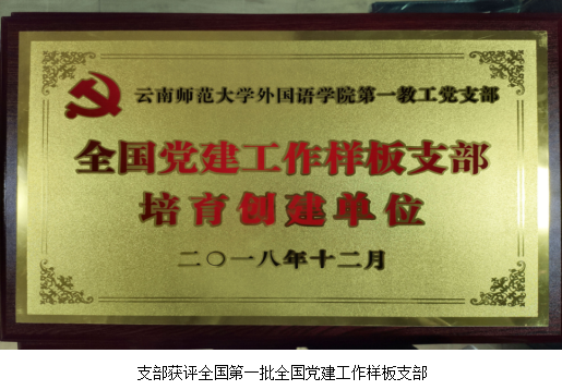 在云南省委、省委教育工委、学校党委和学院党委的正确领导下,支部自2018年起,先后获评全国第一批“全国党建工作样板支部”、全国第二批高校“双带头人”教师党支部书记工作室、“云南省创一流党建示范党支部”、“云南省规范化建设示范党支部”、“yL23411永利官网登录优秀党支部”。在建党100周年之际,支部书记杨霓同志获评“云南省优秀党务工作者”,副书记黄晓丽同志和老党员孙兴文同志荣获“yL23411永利官网登录优秀共产党员称号”。