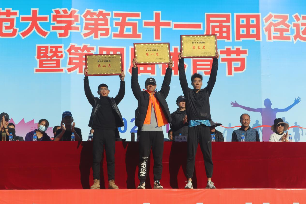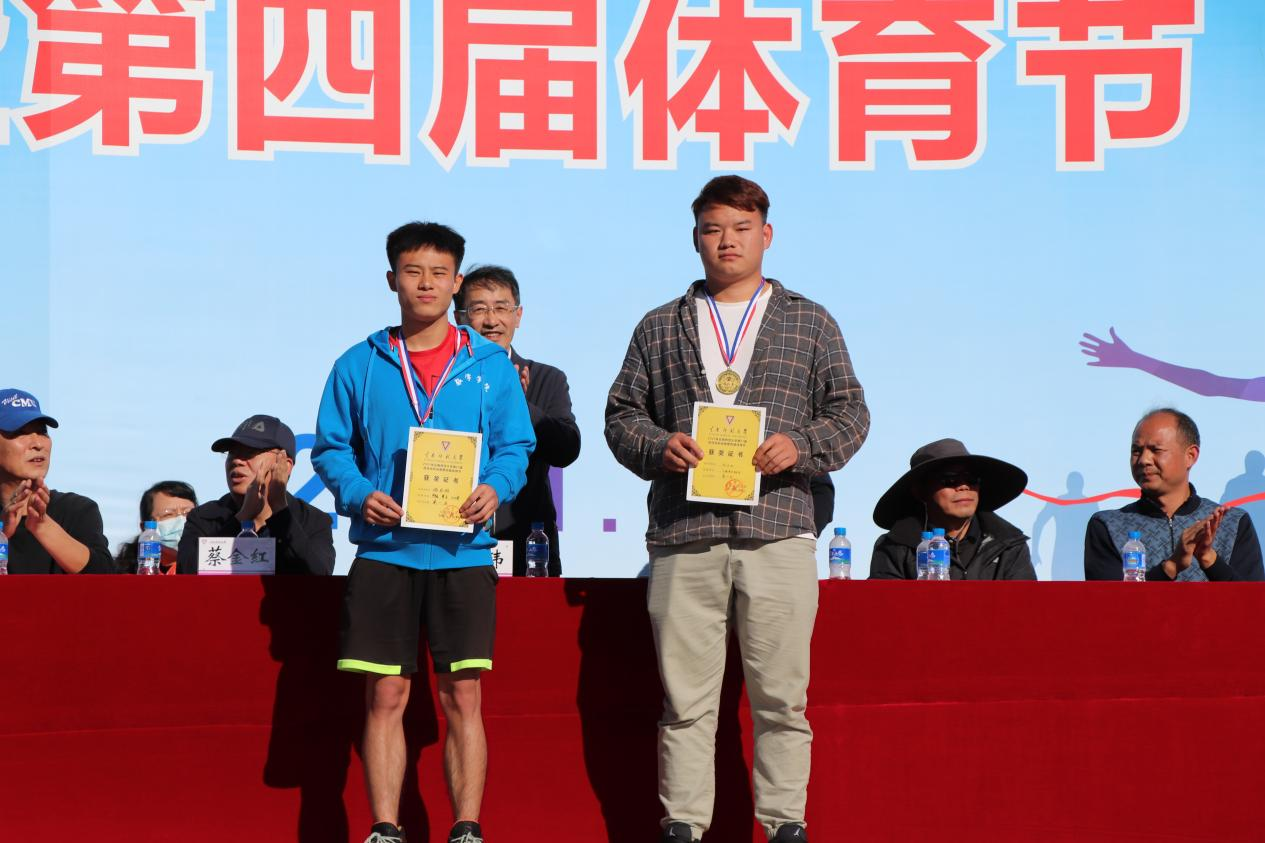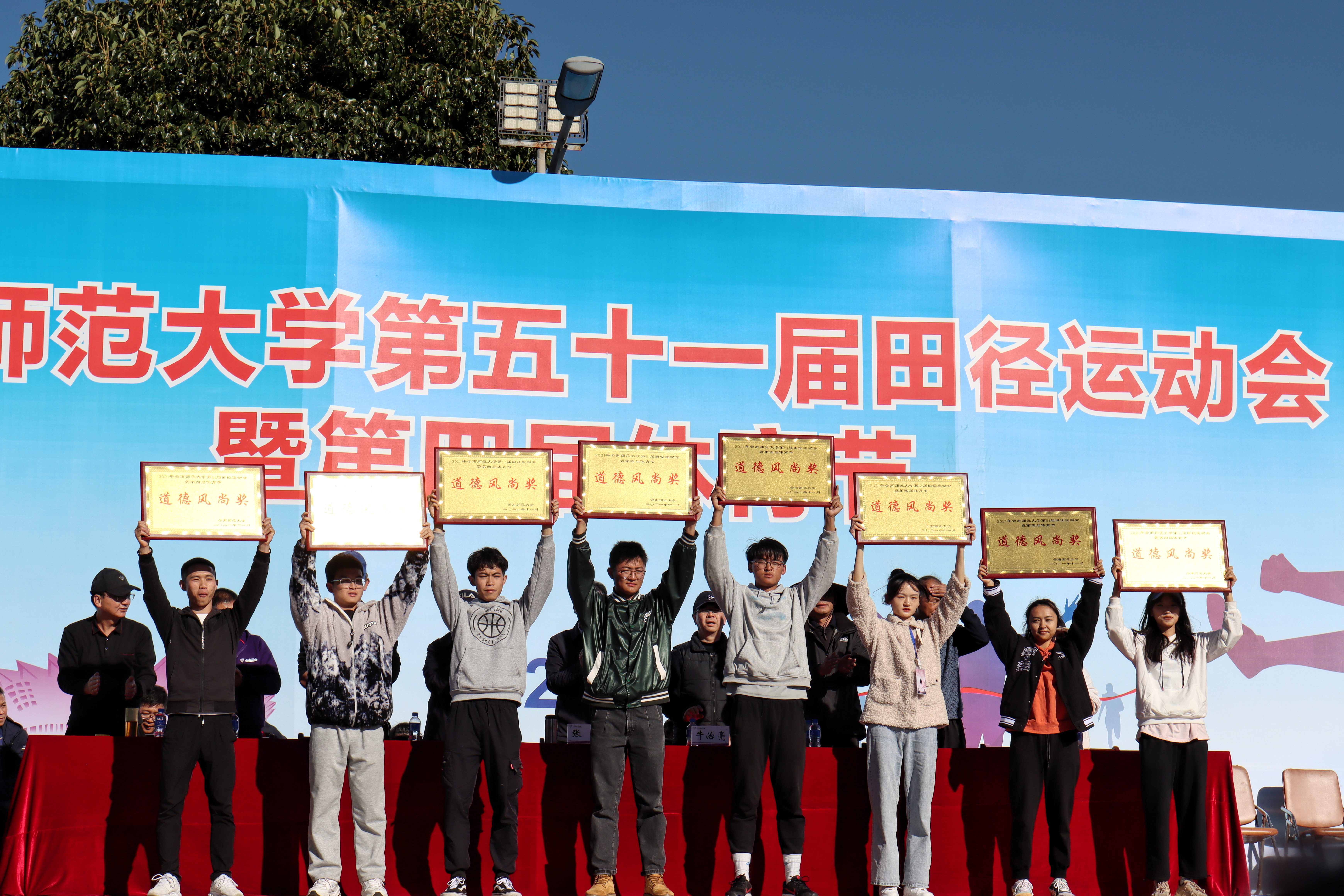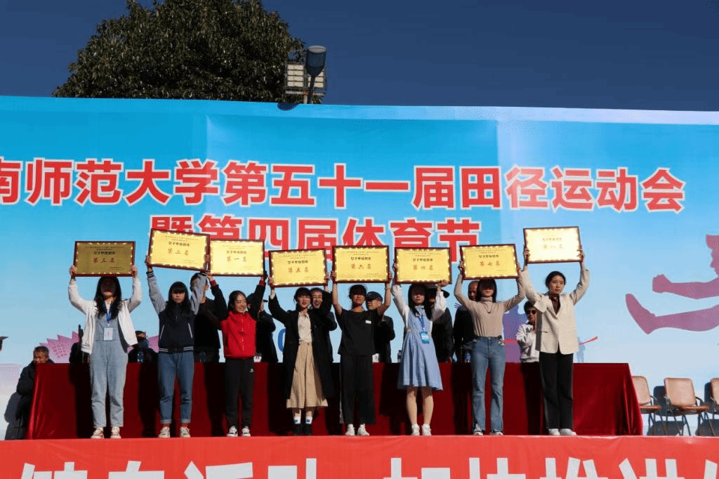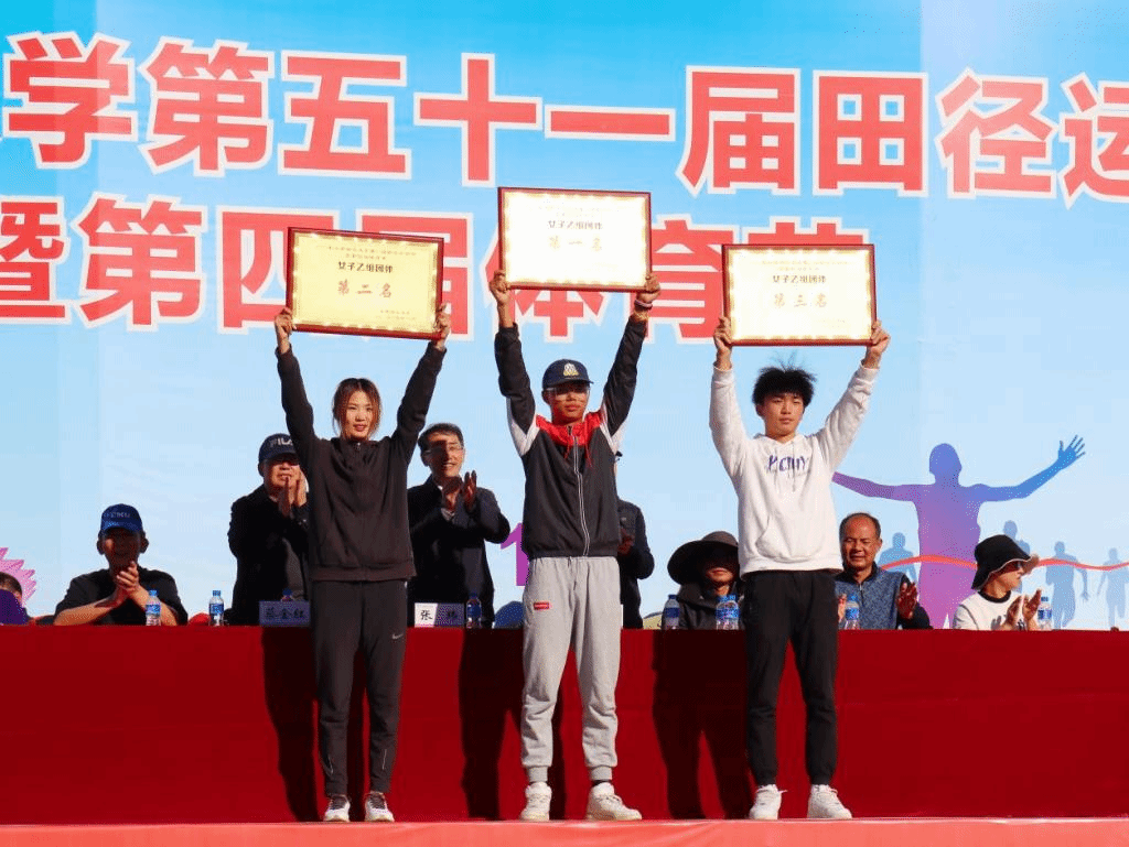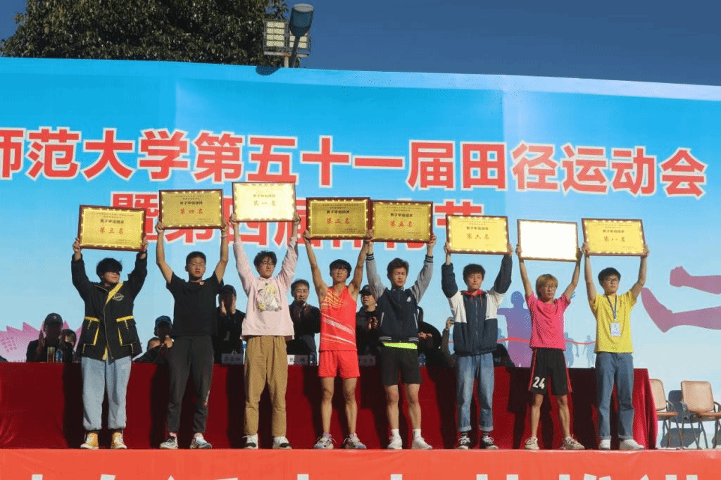 体育学院党委书记华致雄宣布了获得道德风尚奖的单位,运动会赛事主管助理付阳宣布了获甲组男、女团体前八名和乙组男、女团体前三名的单位。体育学院副院长李翼飞宣读了本次田径运动会破纪录情况:来自数学学院的杨启明同学在男子甲组100米比赛中以10.87秒的成绩打破了11秒的校记录;来自体育学院的赵云红同学在男子乙组铅球比赛中以14.25米的成绩打破了13.8米的校记录。与会领导为甲组男、女团体前八名,乙组男、女团体前三名,获道德风尚奖学院及破校级记录同学颁奖。