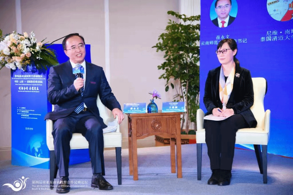 12月9日下午,蒋永文书记参加 “中国(云南)-泰国教育合作分论坛”并主持了“新形势下中泰高等教育的国际交流与合作、机遇与挑战”的专题研讨会。来自云南大学、云南财经大学、昆明医科大学、红河学院、泰国清迈大学、泰国玛希隆大学的领导和专家以线上线下结合的方式参与了讨论。