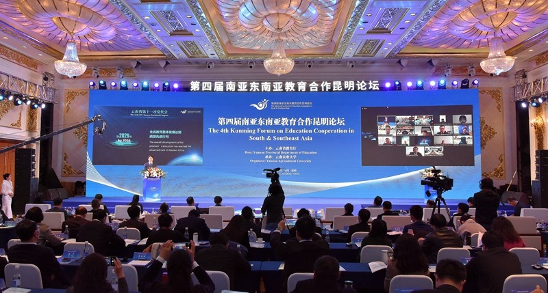 12月9日,以“务实合作,共同发展”为主题的第四届南亚东南亚教育合作昆明论坛在昆明举行。论坛设1个主论坛,3个分论坛和1项艺术展览,重点围绕大学联盟建设、双边和多边教育合作、中外人文交流等专题开展交流与研讨。来自16个国家的200余名教育行政部门负责人和高校代表通过线上线下方式相聚论坛,共襄疫情当下的教育合作发展盛举。在全球抗击新冠疫情的特殊时期,举办第四届南亚东南亚教育合作论坛,意在深度研讨教育发展的未来方向,探索教育交流合作的创新模式,推动区域教育的务实合作与共同发展。永利官网党委书记蒋永文、副校长郝淑美,华文学院党委书记和雪莲、副院长沈毅,对外合作交流处处长黄瑛等参加了为期两天的论坛开幕式及分论坛。