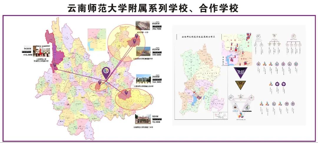 与昭通市威信县人民政府签订《教育帮扶协议书》,组织教学资源开展办学评估、管理人员培养、骨干教师培养、全员培训、中高考备考、教学资源共享等,切实提高威信县一中高中教育发展水平;与镇雄县赤水源中学签订《云南基层人才对口培养省级单位人才团队下沉帮扶培养试点工作协议书》,开展为期一年的具体帮扶工作;与怒江州兰坪县教体局签订《云南省专家服务团助力兰坪县帮扶协议》,就兰坪县易地扶贫搬迁安置点学校教育质量提升项目,开展为期一年的专项帮扶;附属镇雄中学自招生办学以来,教育质量快速提升,实现了“把优质生源留在本县就读,减轻贫困家庭的教育负担”的扶贫目标,先后受到半月谈、中国教育报、光明日报等媒体的采访报道;附属怒江州民族中学教育教学质量显著提升,现已顺利完成晋升省一级二等高完中办学水平州级综合评价迎评工作;附属丘北中学被认定为云南省一级三等高完中,进入全省一级完中行列,提前完成合作办学阶段性目标任务,在当地形成了引领和示范作用;附属易门中学,已由“黄牌警告”学校转变为办学质量提升较快的学校,2019年学校高考各项指标均居玉溪市两区七县17所县区高中第一名,创易门县高中教育自办学80周年以来的高考奇迹;落实“干部挂职和骨干教师支教”,师大附中派出校长挂职3年帮扶丽江一中,师大附中、师大实验中学、云南民族中学、师大附属世纪金源学校派出骨干教师支教迪庆州多所中学2年以上,涌现出附属镇雄中学胡克州等一批优秀教育扶贫干部。
