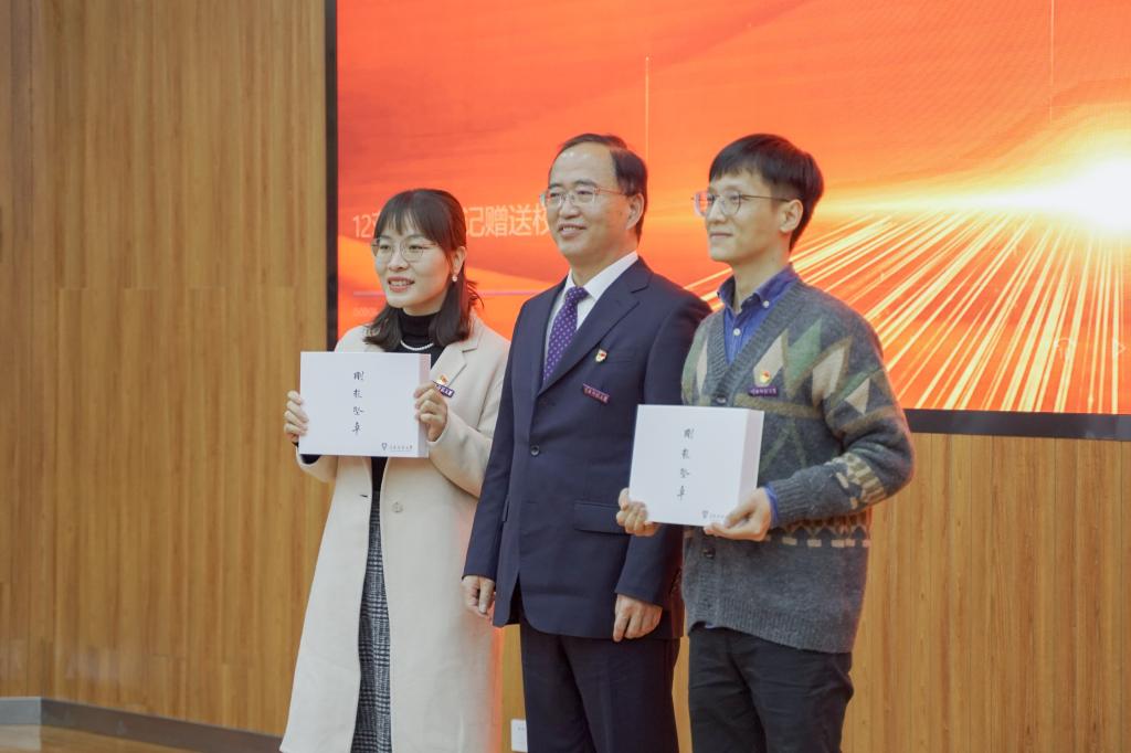 校党委书记蒋永文向新进教师代表赠与西南联大时期、昆明师范学院时期以及yL23411永利官网登录的纪念校徽,勉励新进教职工牢记学校光辉历史,秉承学校优良传统,守正创新、再立新功、再续辉煌。