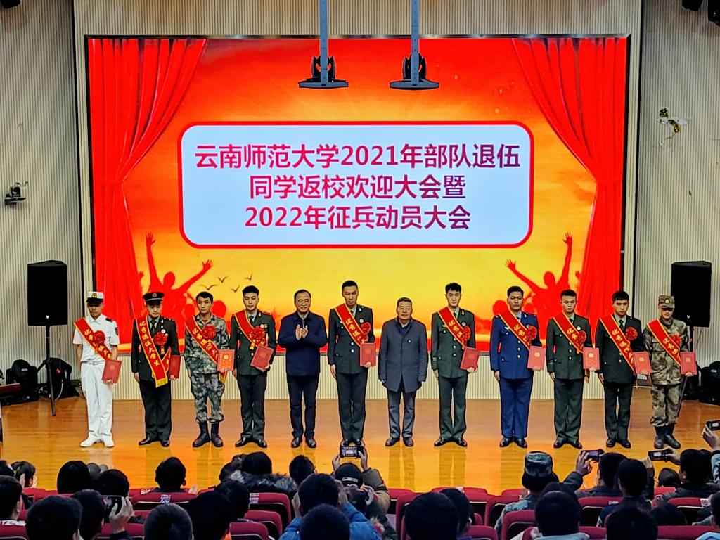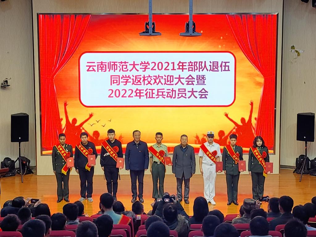 12月23日下午,2021年退伍复学大学生欢迎大会暨2022年征兵动员大会在永利官网能环学院107报告厅举行。校党委书记蒋永文,党委副书记李宏,副校长蔡金红,学生工作领导小组成员单位的主要负责人,各学院(学部)党委书记、副书记、辅导员,2021 年退伍复学学生及各学院(学部)有参军意愿的学生代表参加了此次大会。大会由校党委副书记李宏主持。