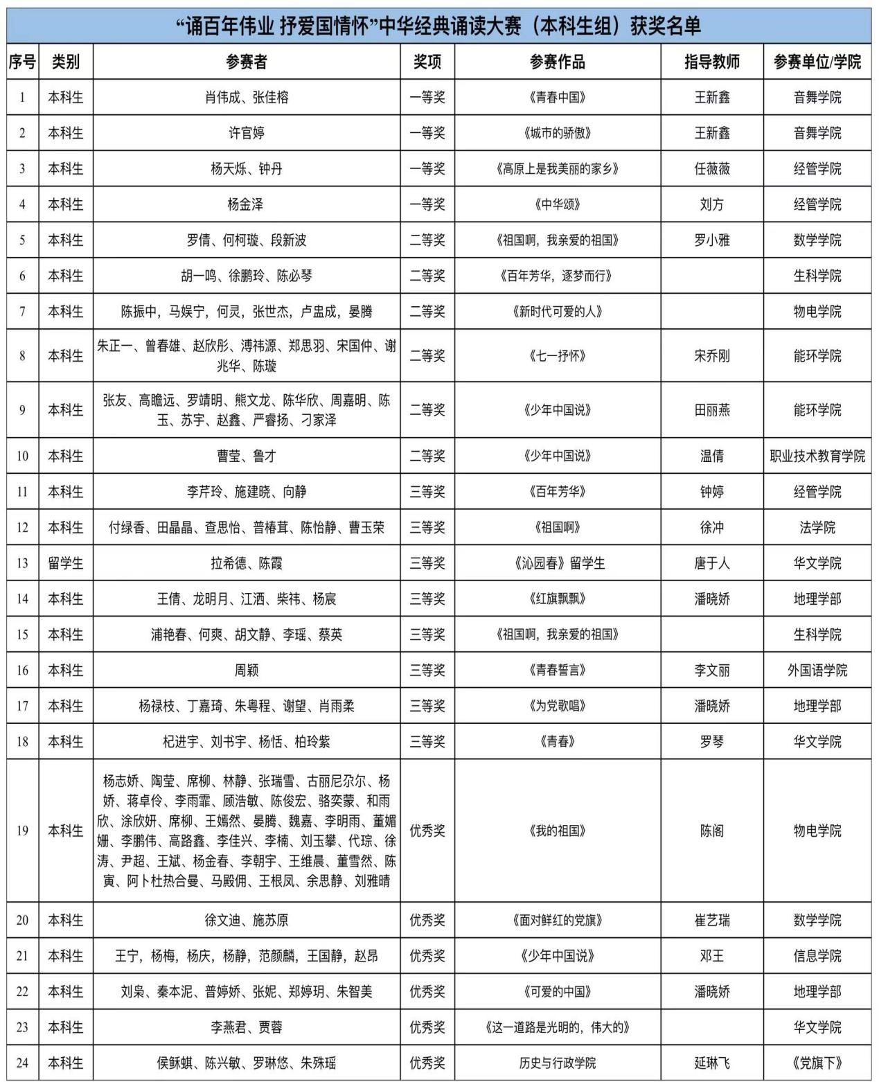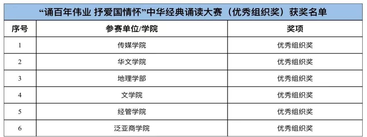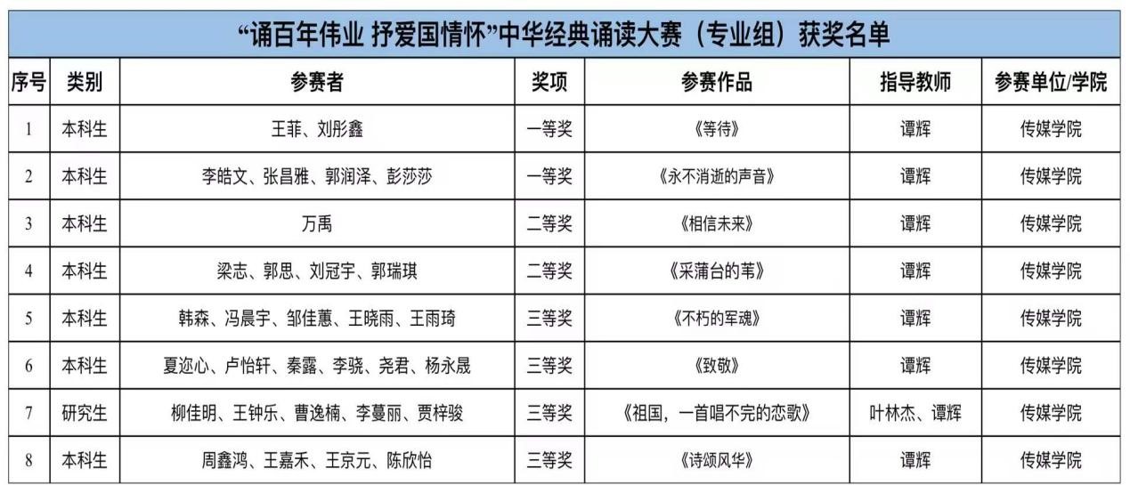 由学校语言字工作委员会、教务处、共青团yL23411永利官网登录委员会主办,传媒学院、学校国家语言文字推广基地承办的“诵百年伟业 抒爱国情怀”中华经典诵读大赛近日圆满谢幕。此次大赛自9月底启动以来,得到了全校师生积极响应,收到来自16个学院的本科生、研究生、留学生参赛作品共72件。经过评委们公正专业、细致认真地评审,共评出:专业组一等奖2项,二等奖2项,三等奖4项;本科生组一等奖4项,二等奖6项,三等奖8项,优秀奖6项;研究生组一等奖2项,二等奖4项,三等奖5项,优秀奖3项;优秀指导教师奖8项,优秀组织奖6项。