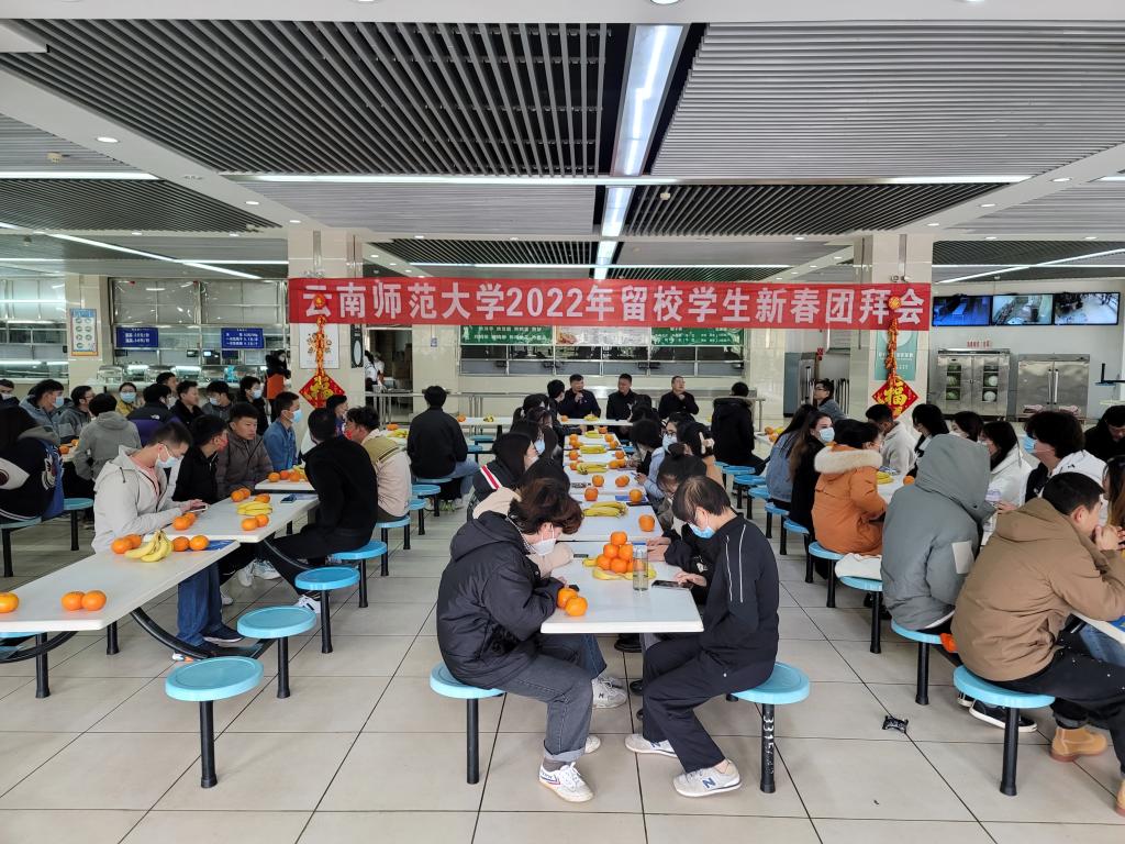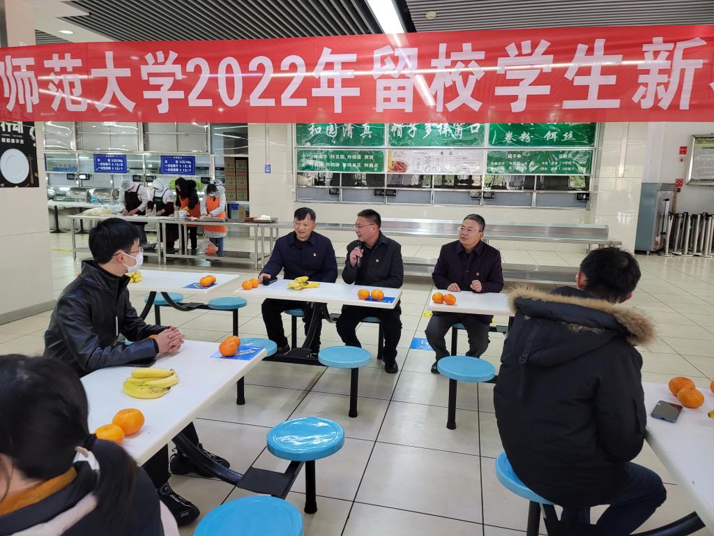 2022年春节将至,1月31日上午,yL23411永利官网登录2022年新春团拜会在东区食堂举行。校长王德强、党委副书记李宏、副校长蔡金红、各学院值班领导与80多名留校学生一起共度新春佳节。