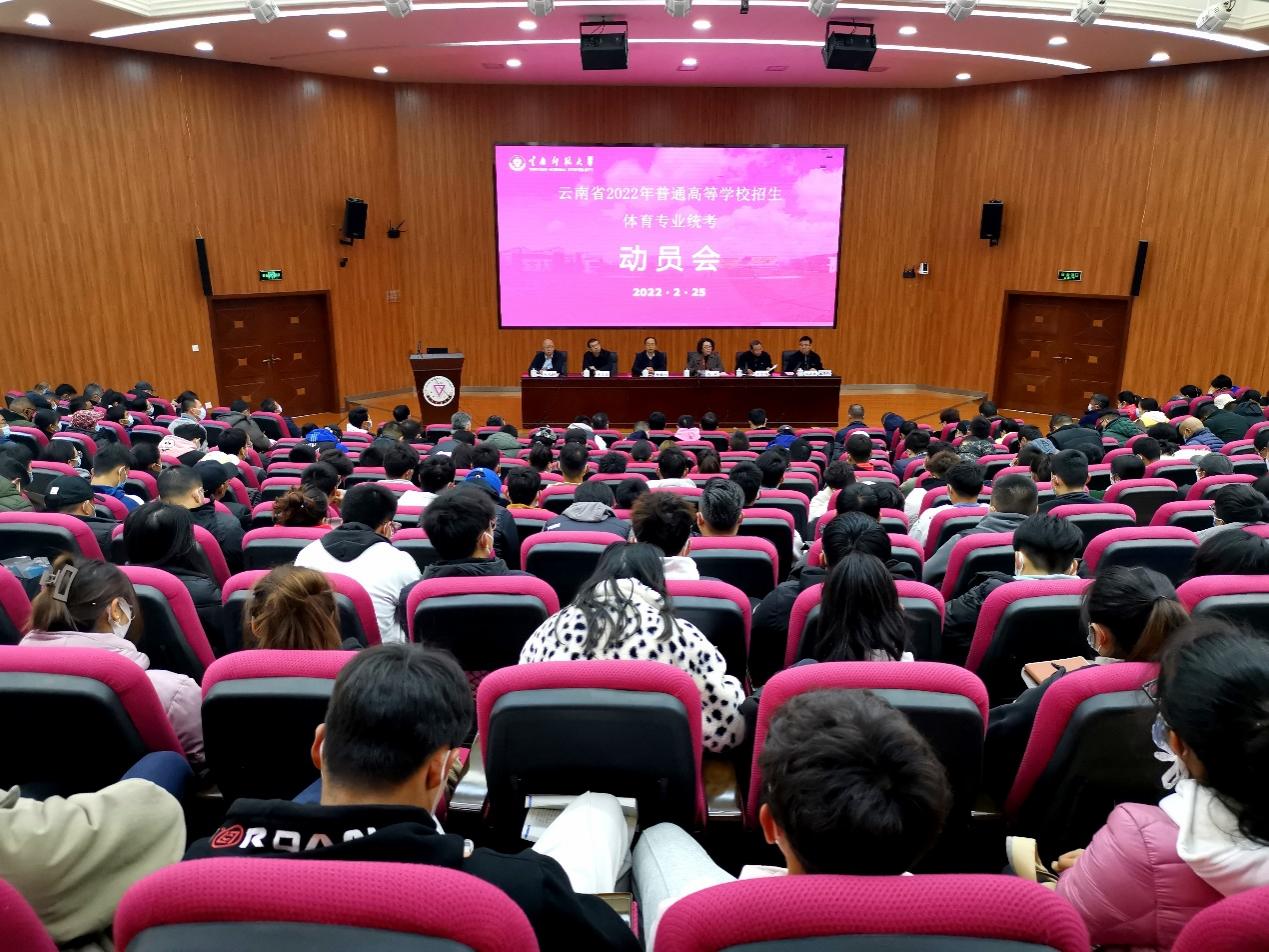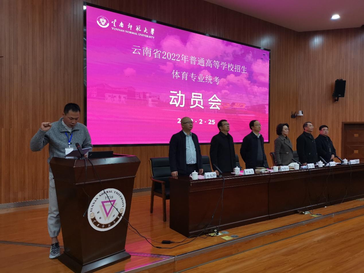 2月25日下午,云南省2022年普通高等学校招生体育专业统考动员会在永利官网呈贡主校区汇学楼报告厅召开。省教育厅、省招生考试院、省纪委监委驻省教育厅纪检监察组、yL23411永利官网登录相关领导,校纪检处、教务处、保卫处、后勤保障服务中心、体育学院等相关单位负责人,以及全体考务人员参加了大会。会议由武友德副校长主持。
