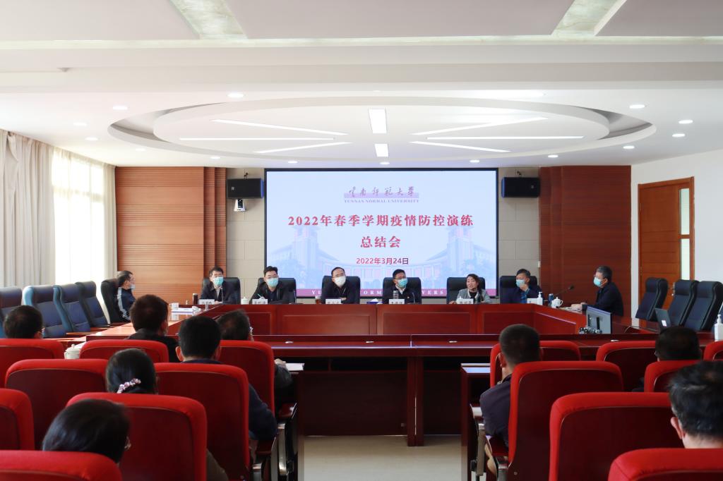 演练结束后,学校在行政楼340会议室召开疫情防控演练总结会。校领导,各部门、学院的主要负责人参加会议,校党委副书记张玮主持会议。