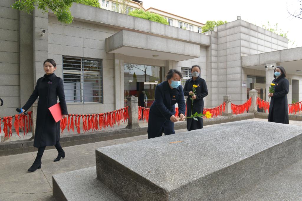 上午9时,全体师生代表向烈士默哀,行鞠躬礼,并列队瞻仰闻一多先生衣冠冢和四烈士墓,向烈士敬献鲜花,以寄托对革命烈士的无限哀思,表达对革命烈士的无限敬仰与怀念之情。