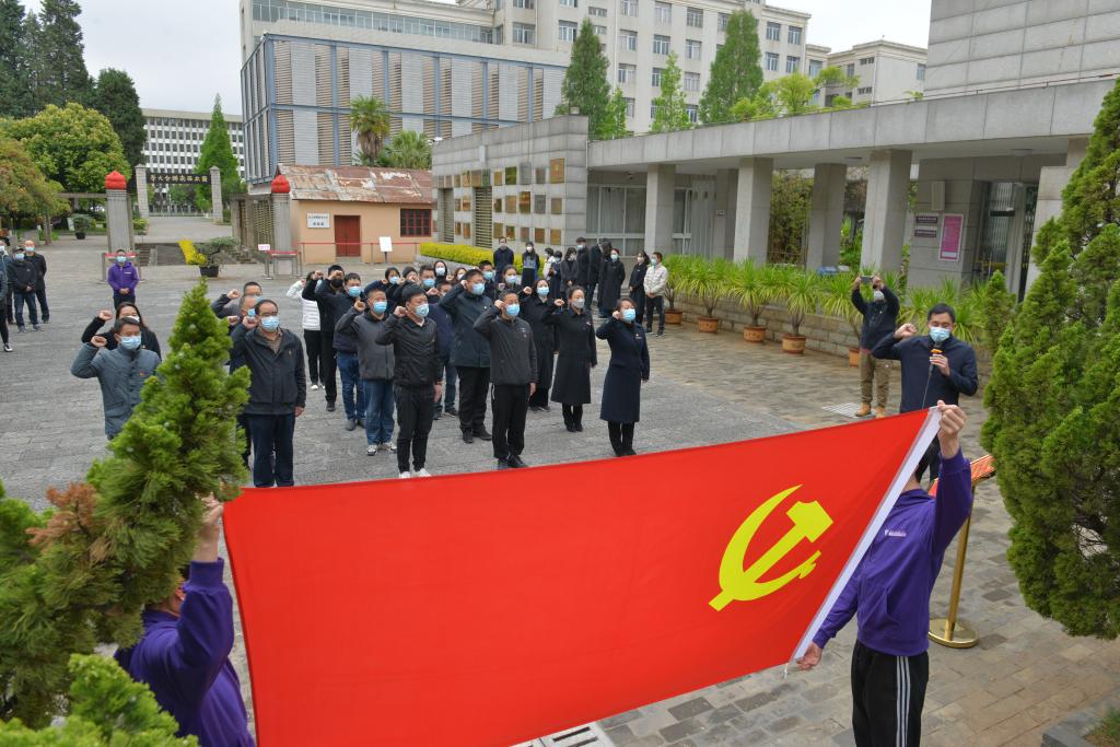 在烈士墓前,西南联大博物馆专职讲解员讲述了革命烈士坚持真理、坚守理想、投身革命的爱国故事,分享了红色故事《“闻一多先生的精神不死”血书》,歌颂了闻一多等革命先烈舍生取义、为建立新中国洒尽最后一滴热血的大无畏爱国主义、革命英雄主义精神。全体共产党员在领誓人的带领下重温入党誓词,激励自己不忘初心、牢记使命,更加坚定理想信念。大家表示,一定永远铭记革命先烈的浩然正气,用实际行动投入新时代,奋斗新征程。