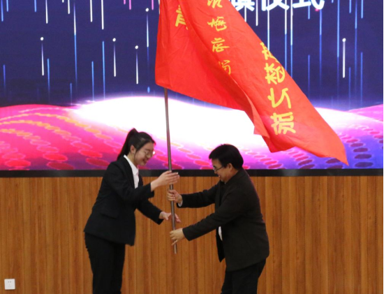 随后,副校长、创新创业学院副院长武友德为本届“青年红色筑梦之旅”项目授旗。