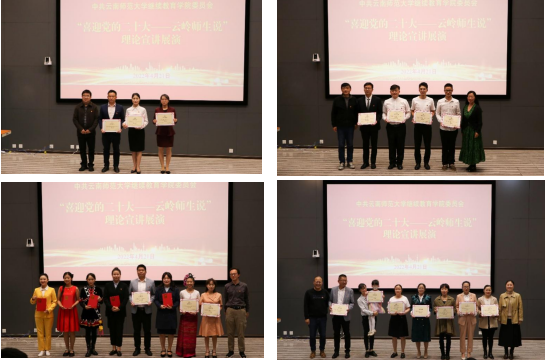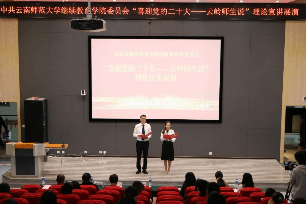 为积极响应中共云南省委教育工委办公室关于举办“喜迎党的二十大——云岭师生说”理论宣讲比赛的通知要求,继续教育学院于4月21日在实训大楼报告厅举办“喜迎党的二十大——云岭师生说”理论宣讲展演。来自云南省“万名校长培训计划”第七期培训班的19个临时党支部、继续教育学院教工党支部、云南联大干部教育学院教工党支部和2021年基层人才对口培养班(第二期)临时党支部共22组选手参加了比赛。校党委委员、副校长武友德,组织部副部长马春雨,继续教育学院党委书记肖飞、院长唐瑛、院党委副书记白宇,云南教育干部培训中心副主任姜元涛等出席了展演。