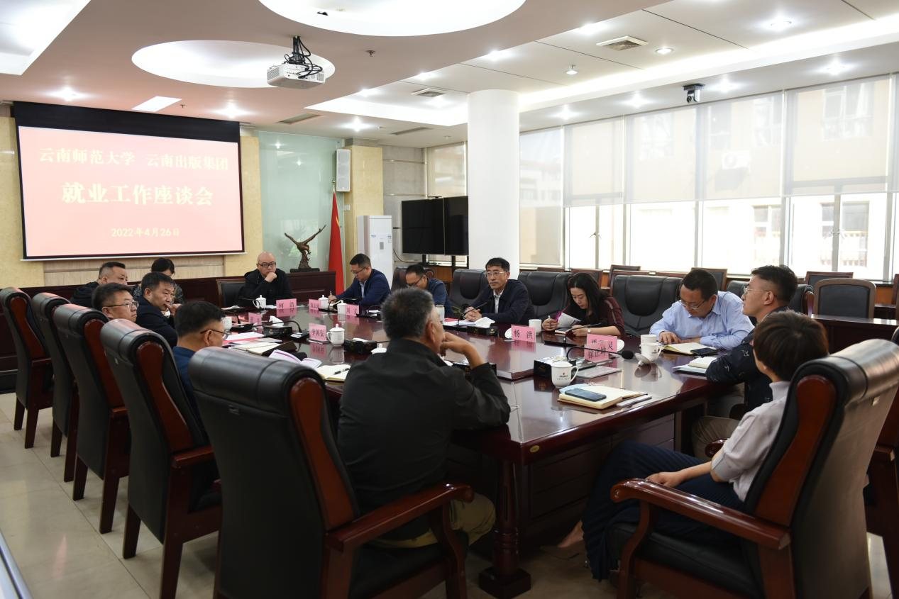 就业是最大的民生,为贯彻落实《教育部办公厅关于开展全国高校书记校长访企拓岗促就业专项行动的通知》和《yL23411永利官网登录访企拓岗促就业行动方案》文件精神,切实做好2022届毕业生就业工作,4月26日上午,校党委副书记张玮一行赴云南出版集团有限责任公司开展访企拓岗促就业调研交流,校党委组织部、就业处、教育学部、经济与管理学院、美术学院、历史与行政学院相关负责人参加了调研。