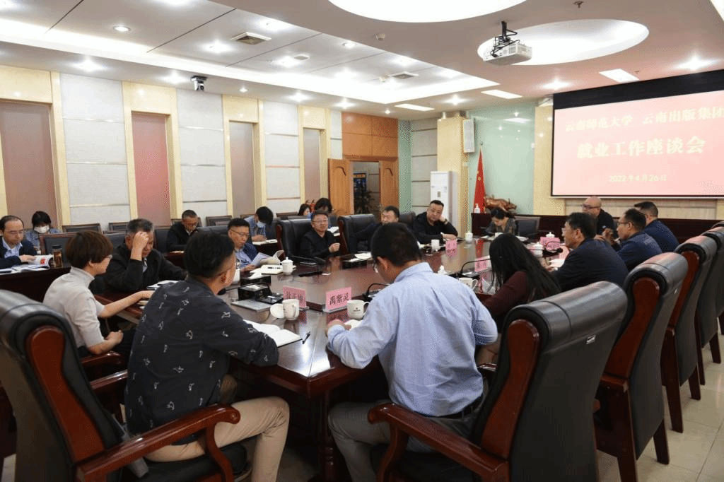 调研座谈会上,云南出版集团有限责任公司党委副书记李国安介绍了公司基本情况及人才招聘需求。云南出版集团有限责任公司是云南省文化产业龙头骨干企业和教育服务综合实力最强的文化企业。集团主营业务涵盖图书报刊出版、印刷、发行、教育服务、数字教育、文化创意、现代物流等领域。旗下拥有子公司69家,现有职工5000多人,发行网点覆盖16个州市129个县市区及大部分乡镇。