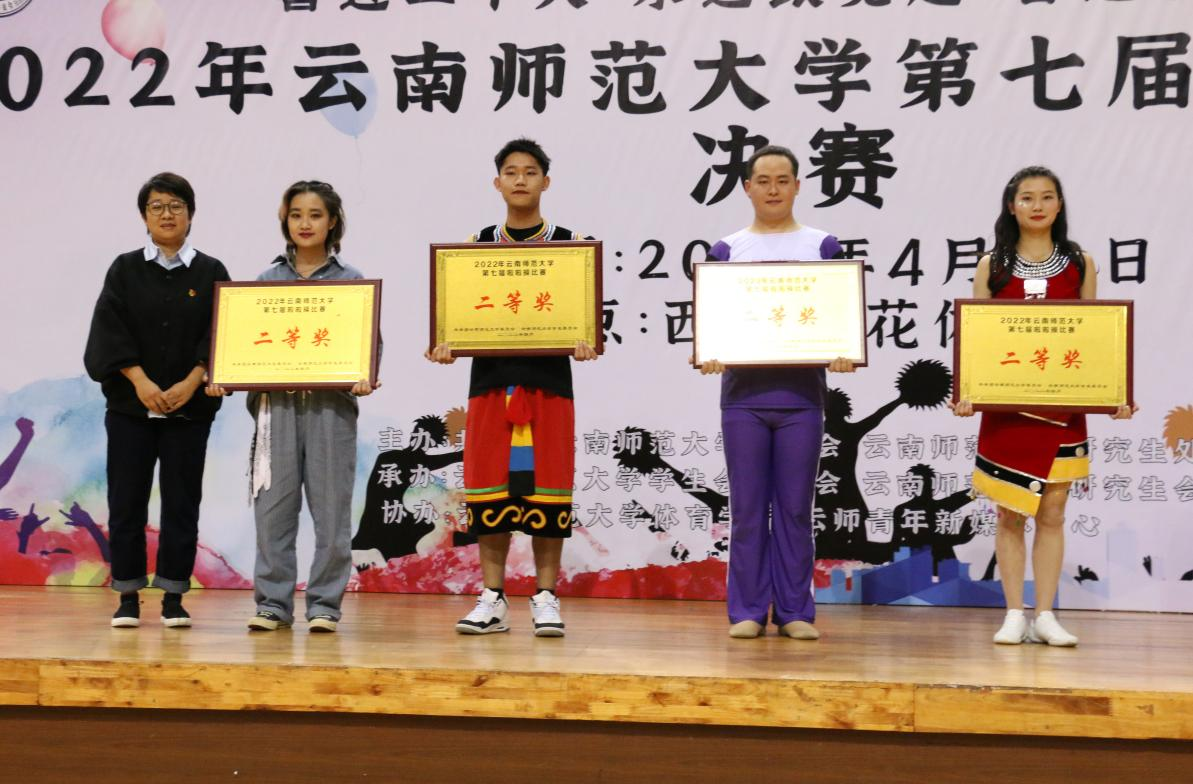 “喜迎二十大、永远跟党走、奋进新征程”。为丰富校园文化生活,营造积极向上的体育氛围,增强同学们强身健体的意识,养成良好的运动习惯,展现新时代大学生青春活力,由校团委、研究生处主办,校学生会、研究生会承办,体育学院、云师青年新媒体中心协办的yL23411永利官网登录第七届啦啦操比赛决赛于2022年4月22日晚在呈贡主校区莲花体育馆精彩呈现。校党委副书记李宏现场观看比赛并为获奖团队颁奖,来自各学院(学部)的代表队和师生观众热情参与了赛事活动。