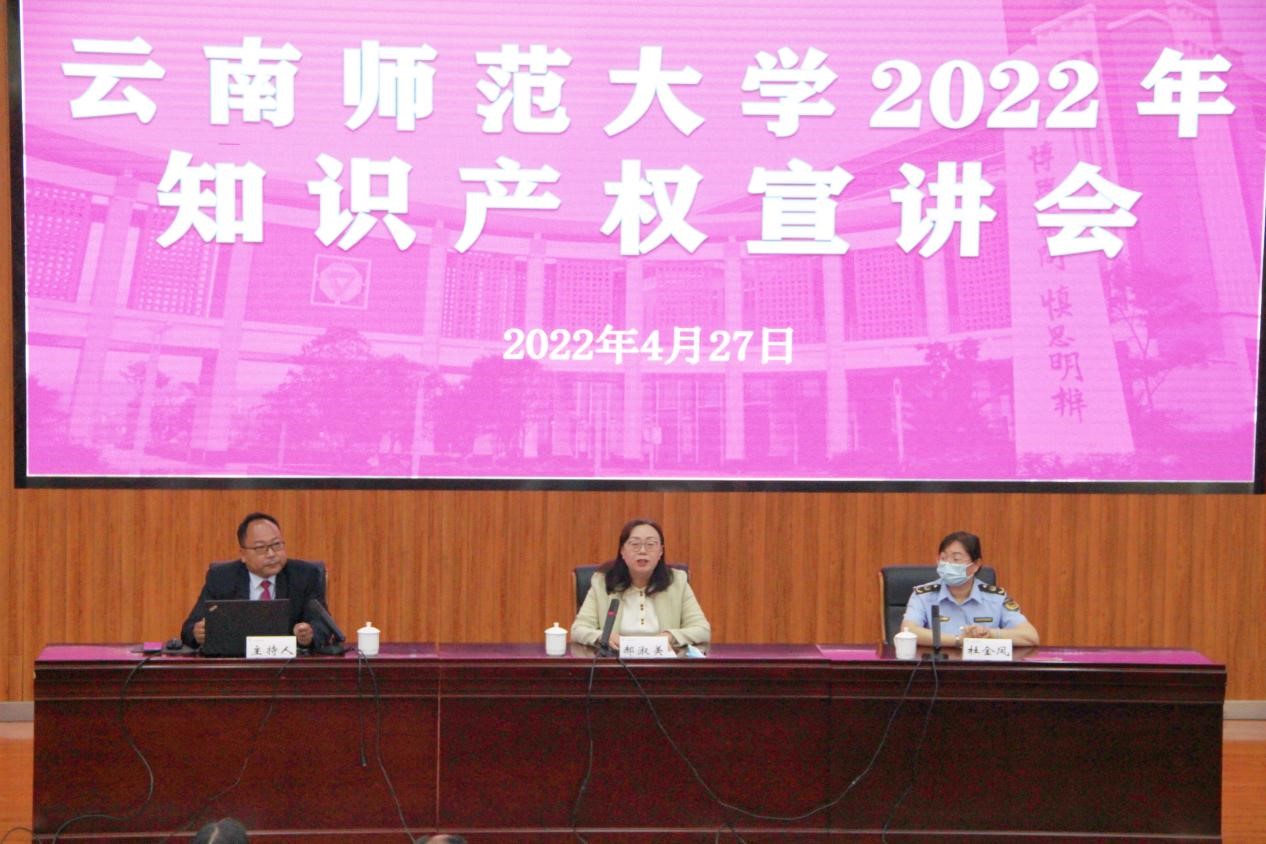 在第22个世界知识产权日到来之际,为响应国家知识产权局关于“全面开启知识产权强国建设新征程”的号召,根据《云南省教育厅关于组织开展2022年知识产权宣传周活动的通知》的工作要求,为提高全校师生知识产权保护意识,规范师生知识产权申请行为,4月27日下午,学校技术转移中心在呈贡校区汇学2幢101报告厅组织举办了“yL23411永利官网登录2022年知识产权宣讲会”,邀请云南省知识产权局知识产权公共服务处主任杜金凤、永利官网技术转移中心主任莫镜辉作专题宣讲。