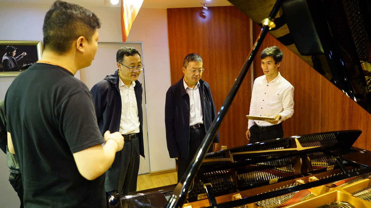 随后,蔡副校长一行又前往广州念琴乐器有限公司昆明分公司调研。总经理杨天臣介绍了公司发展理念、经营方向。他指出,音乐舞蹈学院的毕业生与公司招聘需求非常契合,希望学校不断输送人才到公司,助力企业发展。公司将以“就业创业实习实践基地”基地为依托,不断与学院开展多方位、深层次、宽领域的合作。蔡副校长介绍了学校总体情况及毕业生就业需求,并对公司长期以来支持音乐舞蹈学院发展表示衷心感谢,希望双方在已有合作基础上,在专业展演、教育服务等方面进一步加强校企合作,优势互补。双方一致认为,公司能够为音乐舞蹈类人才培养、毕业生就业、实习实训等提供支持,而学校将继续发挥人才培养优势,积极为企业提供更多服务。